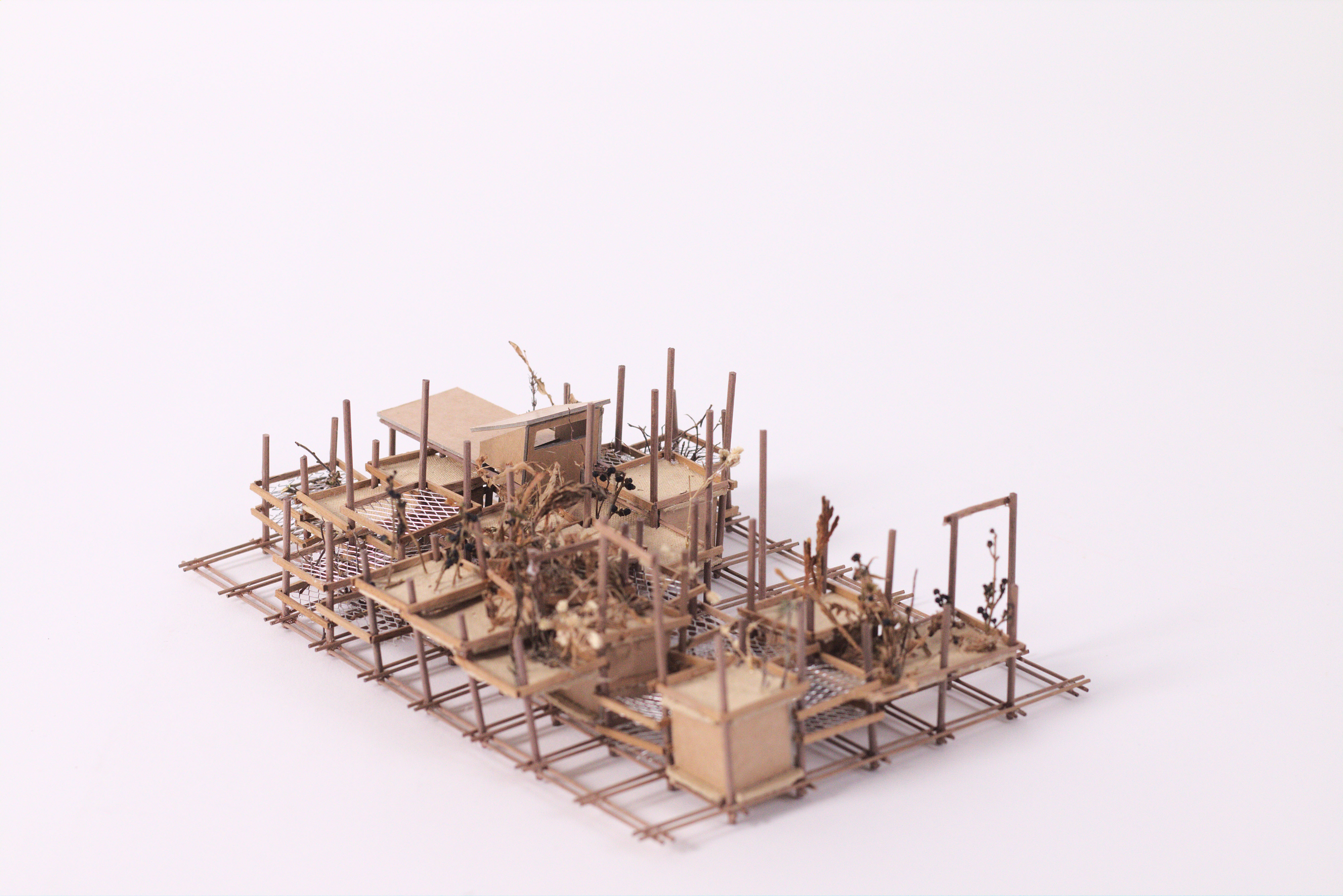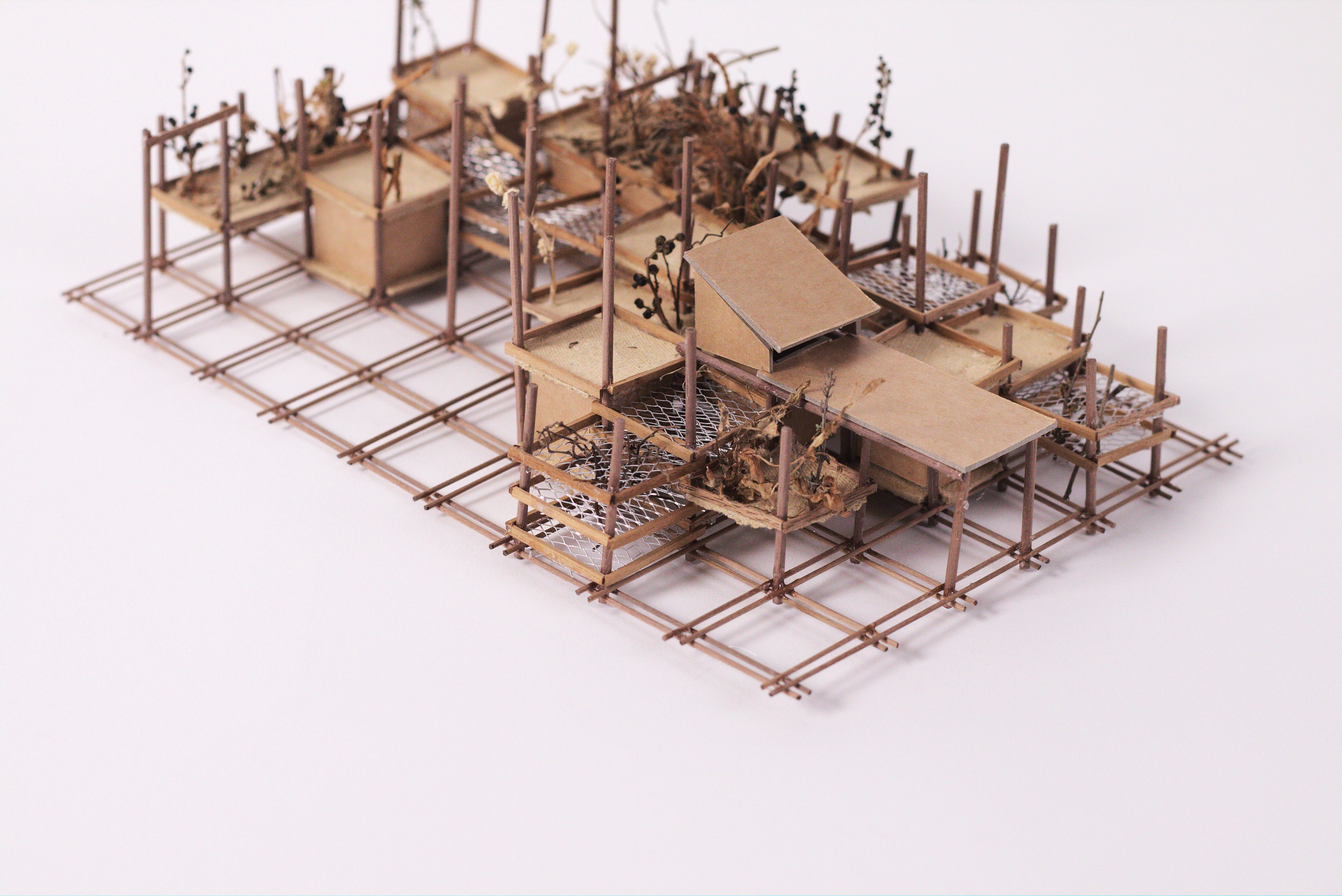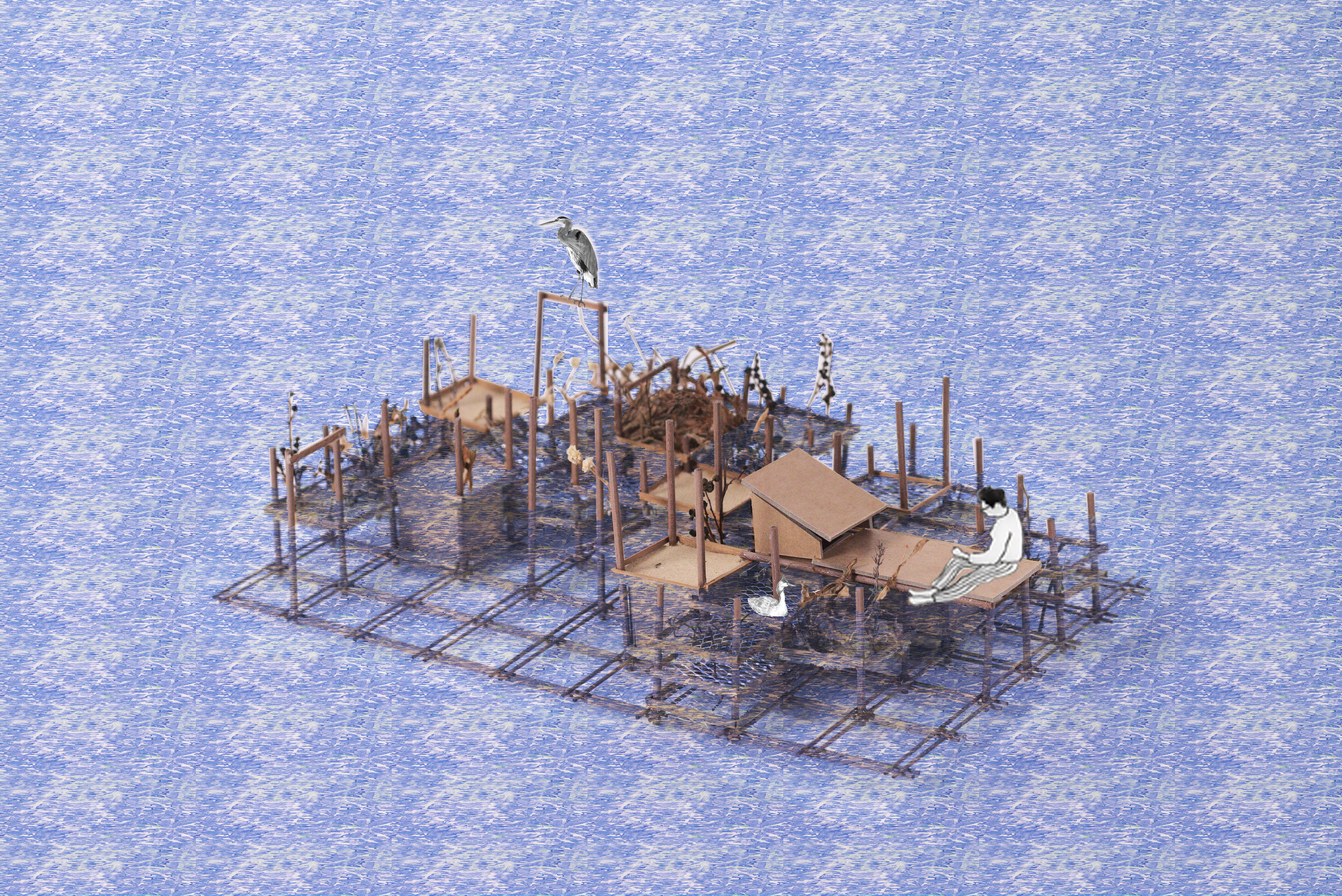 Noé est un îlot artificiel modulaire conçu pour être habité par la faune et la flore du site sur lequel il s’installe : l’homme conçoit mais n’habite pas, c’est en cela un objet architectural manifeste. Situé entre deux rives, Noé fait figure de média dans la recherche d’une réactivation du lien intensif d’échange avec l’élément eau, matière en partage. Noé se donne à voir tout en se préservant de toute activité humaine susceptible de nuire aux espèces animales et végétales qui occupent sa surface. Cette petite étendue de terre détachée de la berge participe indépendamment mais en cohésion avec le site à la recréation ou régénération d’écosystèmes terrestres et aquatiques à diverses échelles, la structure pouvant se composer dans l’espace. Noé peut également se définir comme un objet scientifique, le site d’implantation choisi, les étangs de Commelles, est alors un espace d’expérimentation. Si l’intention première est de proposer une intervention modeste, il s’agit d’apporter la réponse la plus concrète et complète aux divers enjeux environnementaux rencontrés par les espaces naturels aquatiques traversés. L’installation du projet Noé s’accompagne d’un travail de recherche et de collecte d’éléments présentant des qualités répondant à divers enjeux tels que la disparition de certaines espèces d’oiseaux en leur apportant des solutions facilitant la nidification notamment. Cette structure, bien qu’artificielle, se veut totalement réversible, durable par le choix des matériaux et leur mise en œuvre. Noé étant en grande partie immergé, l’empreinte de l’homme tend à s’effacer et l’îlot à se fondre dans le site d’implantation.