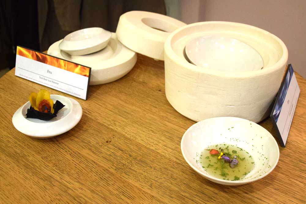 Moules et céramiques pour le Feu et l'Eau, réalisés par les étudiants de TS2 Design de Produits.'>