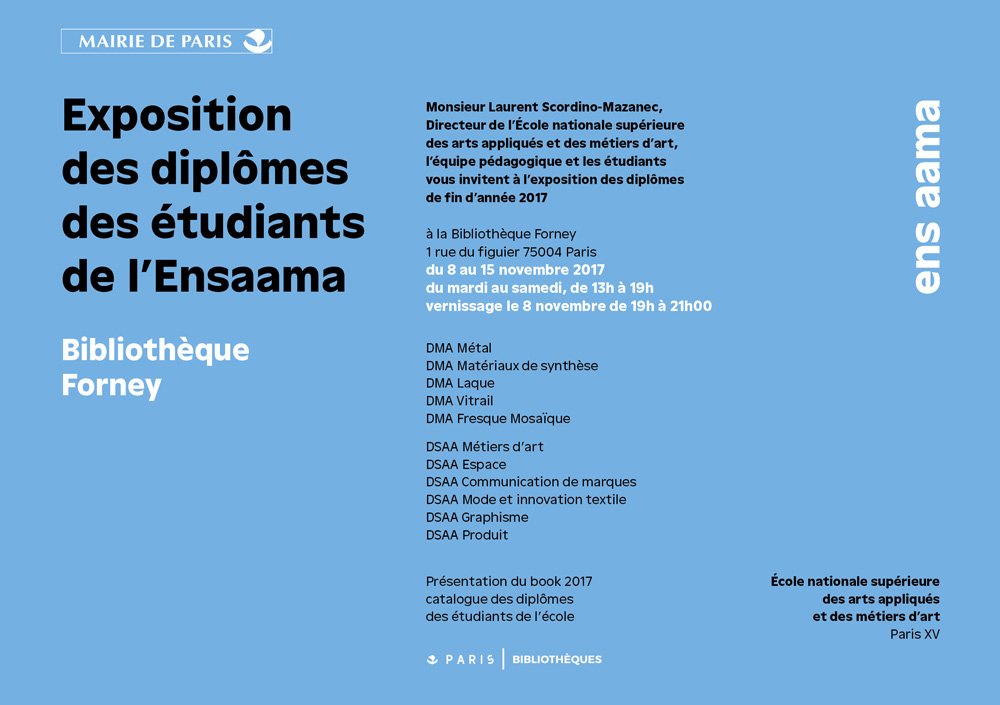 du 8.11.2017 au 15.11.2017L'ensaama s'expose à la bibliothèque Forney