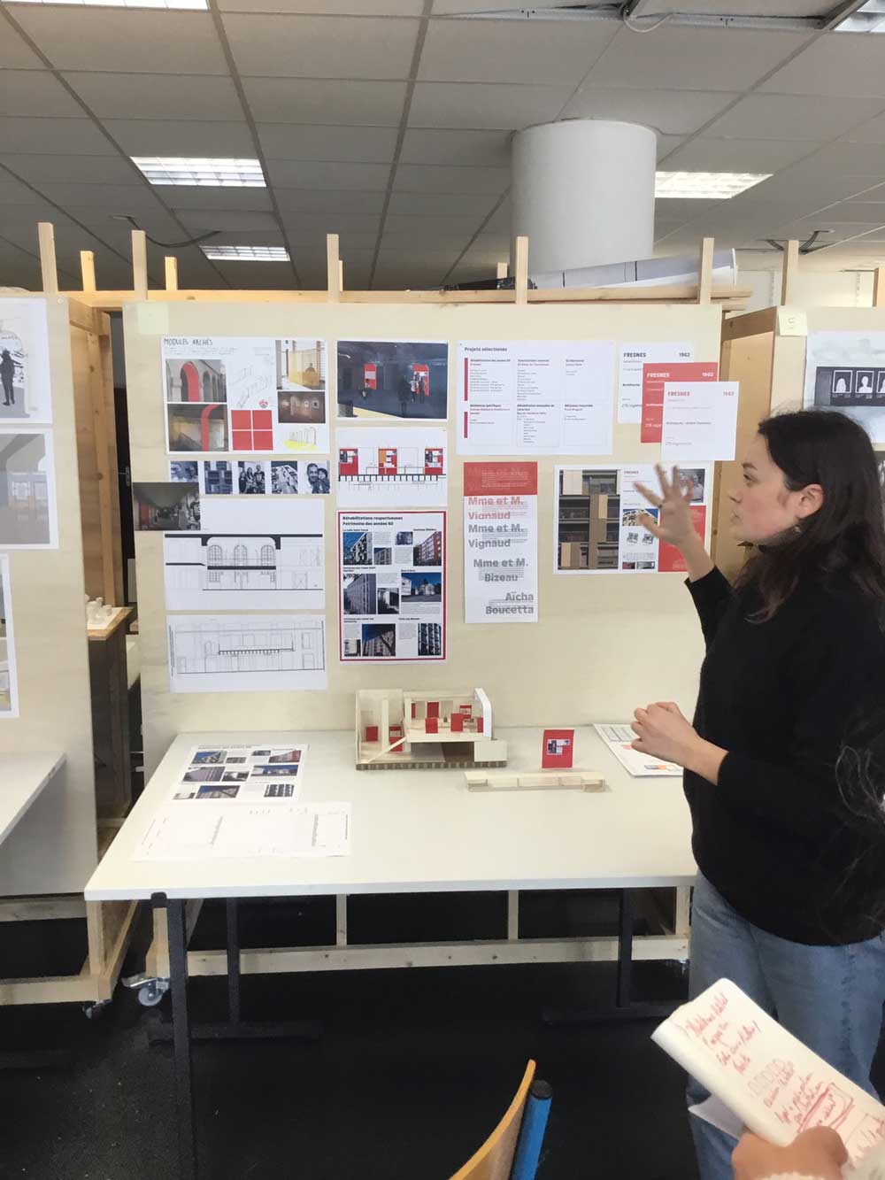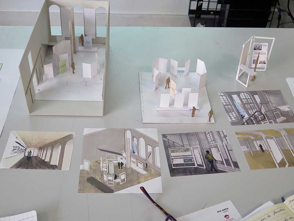 Les étudiants ont été sollicités à travers un workshop en novembre 2019 pour concevoir un projet scénographique d'exposition à la maison de l'architecture sur le site du couvent des Récollets.