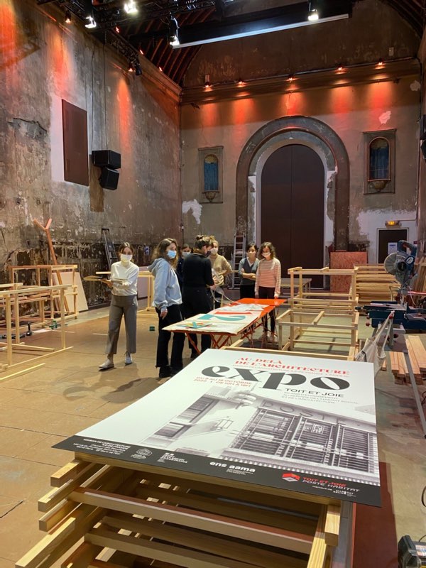 Exposition Au delà de l'architecture (Toit et Joie / Ensaama). DNMADE mention Design Espace. 2019-2020. Montage de l'exposition avec les étudiants de l'Ensaama.