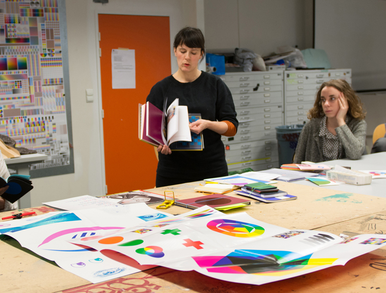 Orientée plus précisément sur l’impression offset, la présentation proposait aux étudiants de découvrir l’étendue de la recherche de Fanette Mellier et son approche singulière de la couleur à travers quelques uns de ses projets.