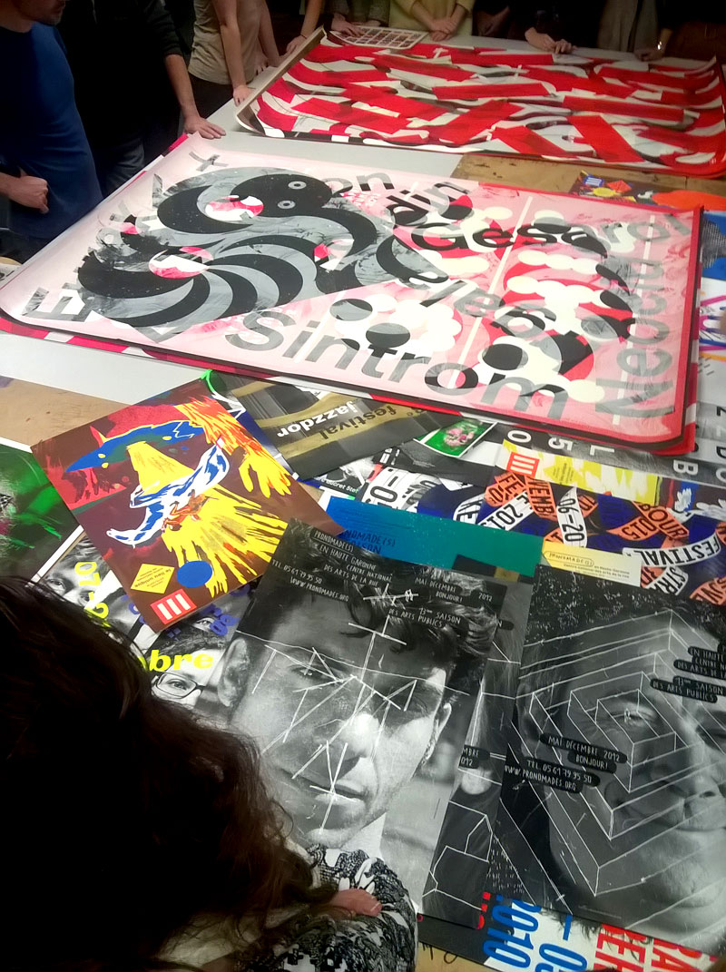 Fondée plus précisément sur l'impression sérigraphique, la présentation proposait aux étudiants de BTS médias imprimés de découvrir quelques travaux emblématiques et la réflexion d'Helmo sur les techniques d'impression.