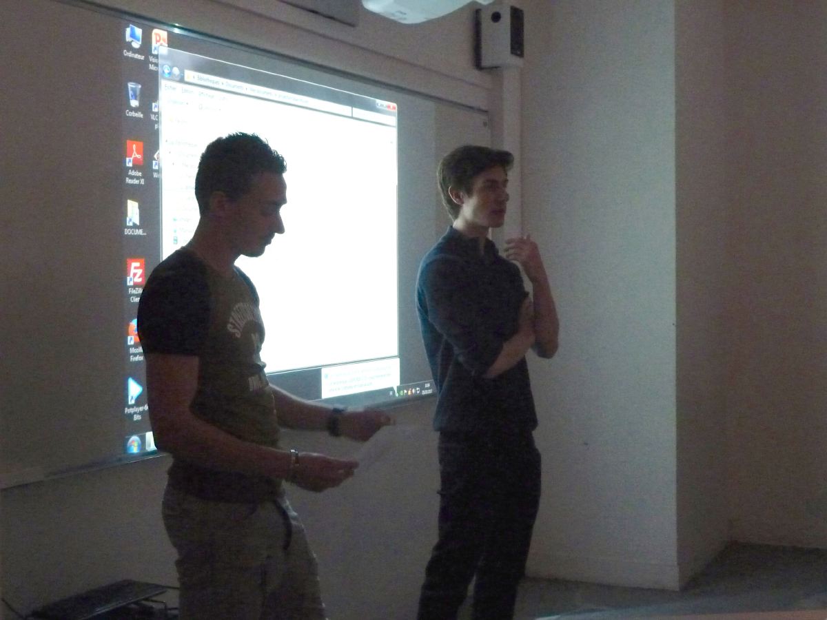 Présentation d'un projet par les étudiants de BTS Design Graphique Médias Numériques. Partenariat avec la Fondation Lilian Thuram, Ensaama 2017.