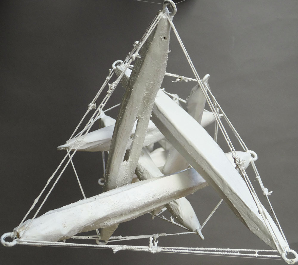 - concevoir une structure dynamique ne devant sa stabilité que par sa mise en tension, sachant que les applications de ce principe couvrent le large champ du Design, depuis l’architecture jusqu’au mobilier, en passant par le luminaire.