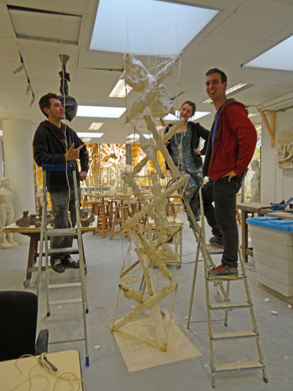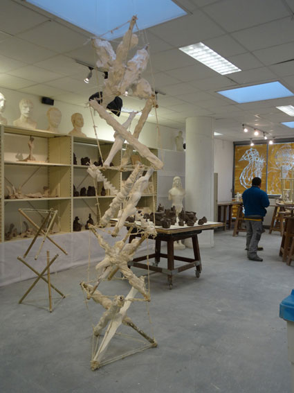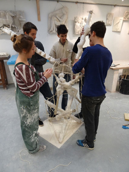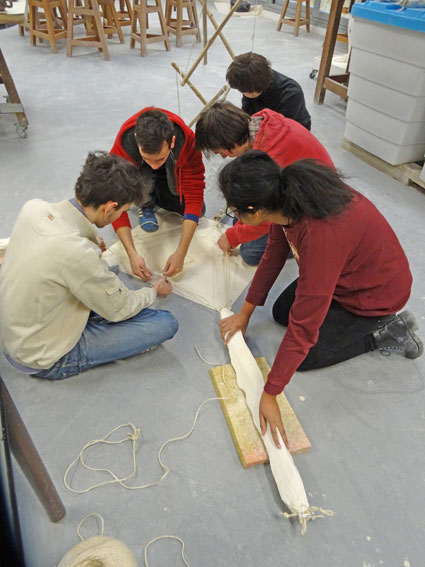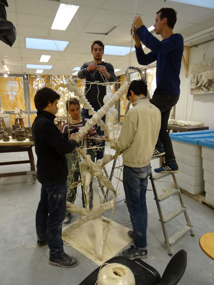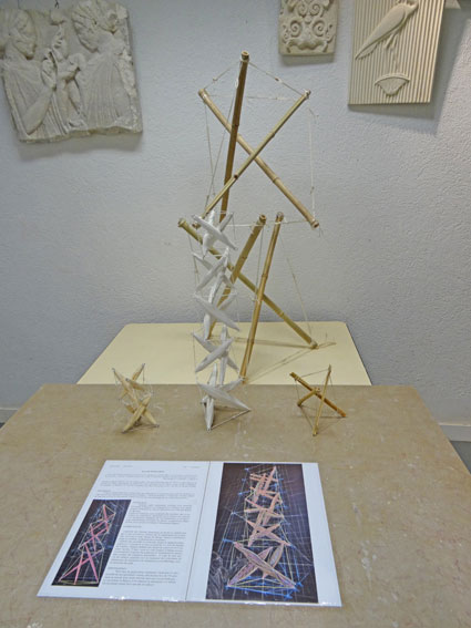 - maîtrise des procédés de recherche, depuis la maquette préparatoire au 1/10 jusqu’à sa mise au point au 1/3, soit une hauteur de 3 mètres. Chaque étudiant sera chargé de concevoir et d’exécuter l’un des 15 étais, selon les cotes propres à chaque niveau.