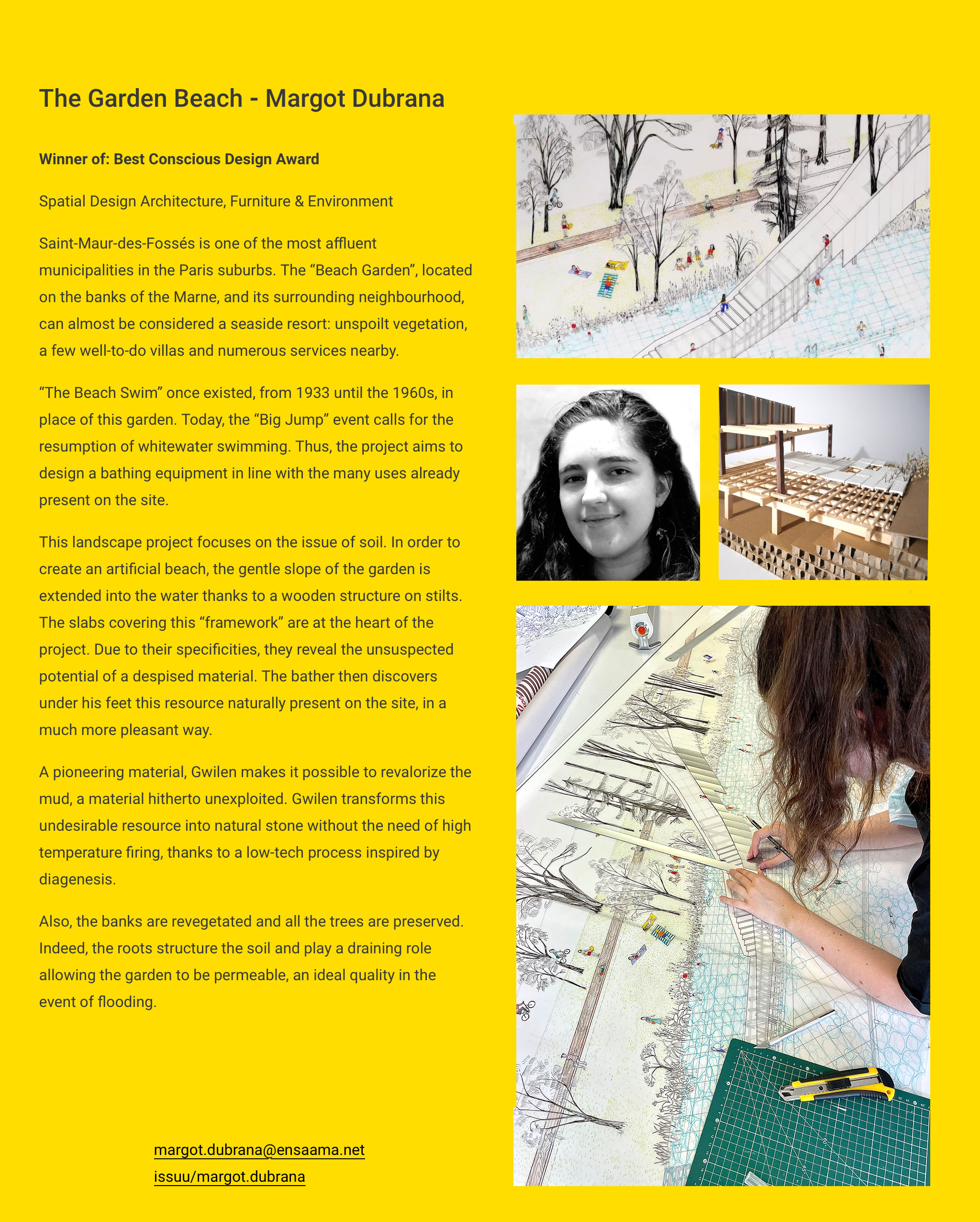 - Margot Dubrana, DNMADE Espace - Habitat, mobilier et environnement, promotion 2021, Best Conscious Design Award pour son projet The Garden Beach ;