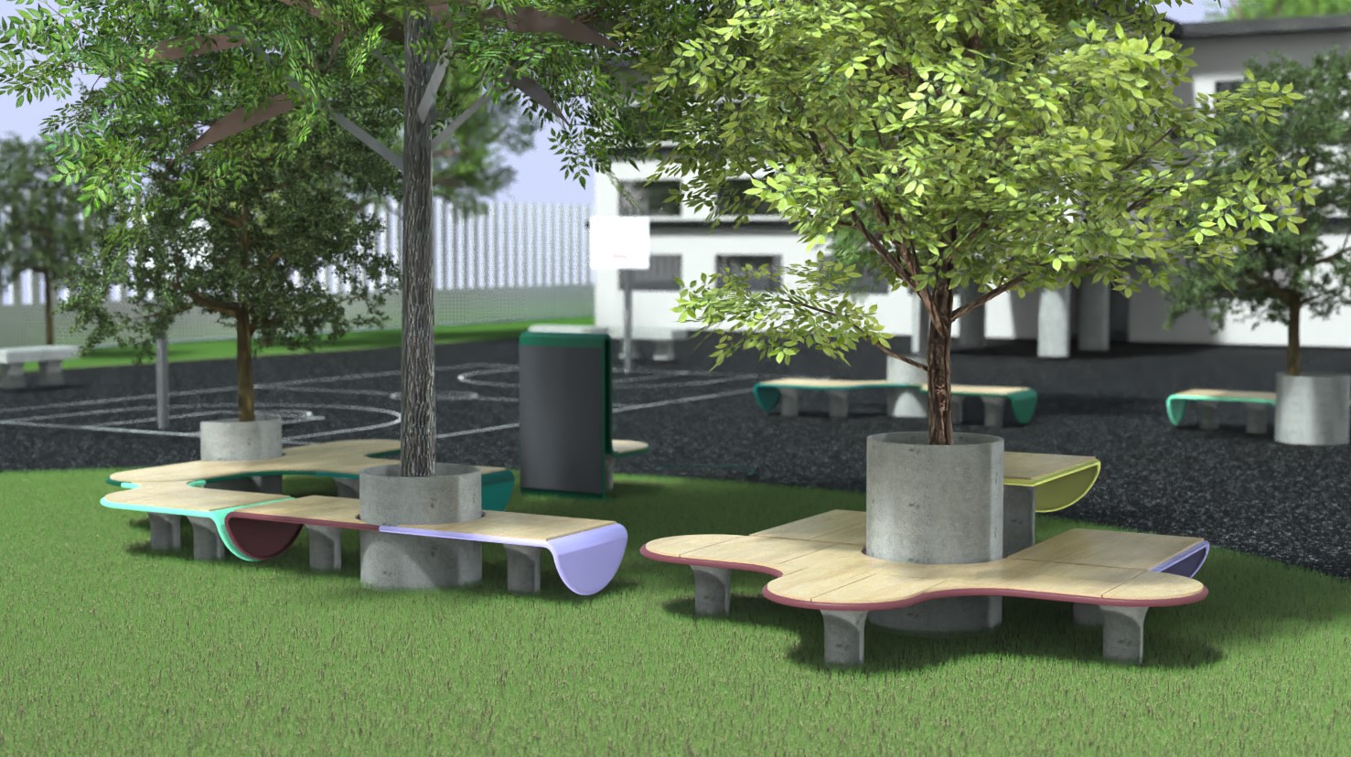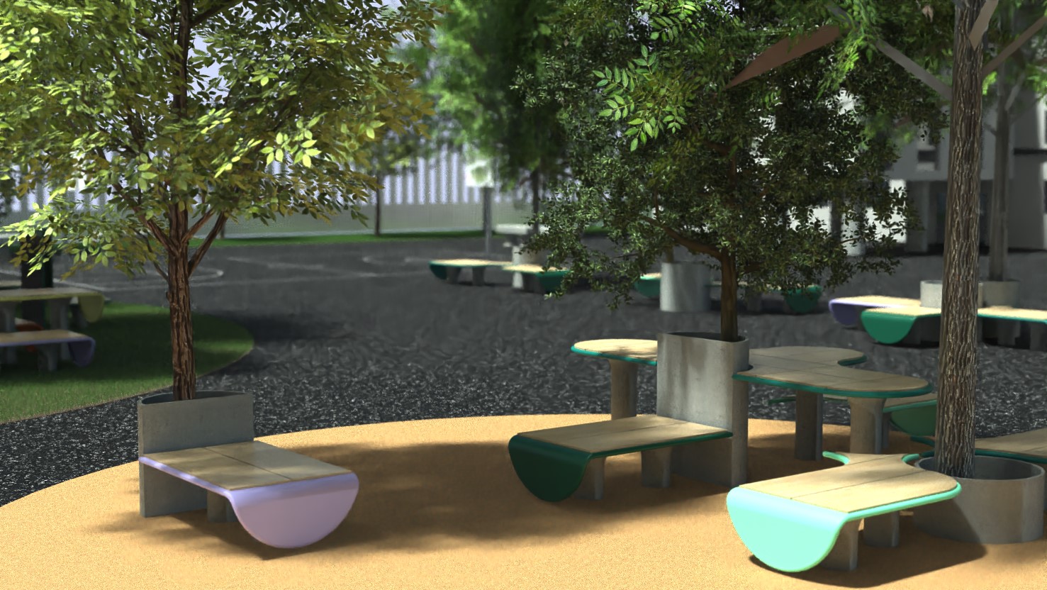 Le projet "Archipel et Cordillère", 2e prix Mobilier national - Jeune création, interroge la thématique de la cour de récréation et des espaces de vie scolaire.