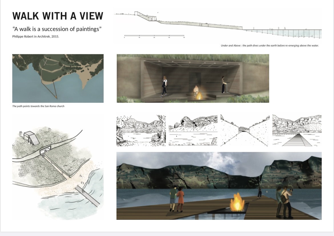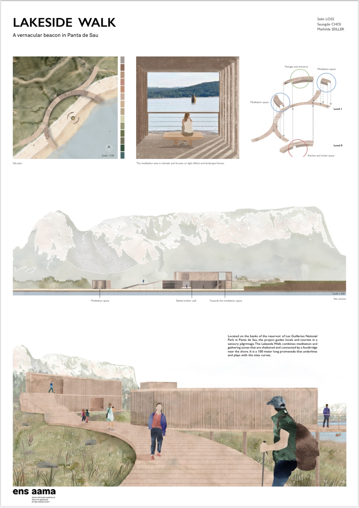 First runner up and public favourite : LAKESIDE WALK by Selin Loss, Mathilde Sellier and Seungdo Choi, students in DSAA1 Spatial Design.