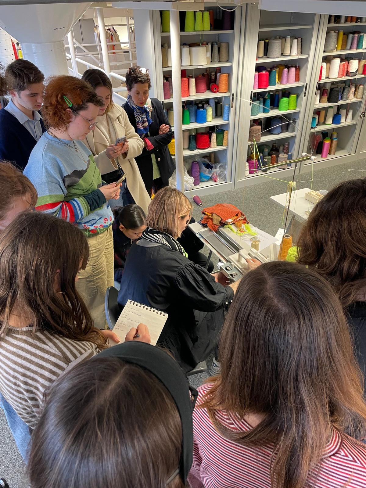 Visite des ateliers, présentations des travaux en tissage et maille des étudiant-es de l'Ensaama - puis des étudiant-es irlandais .