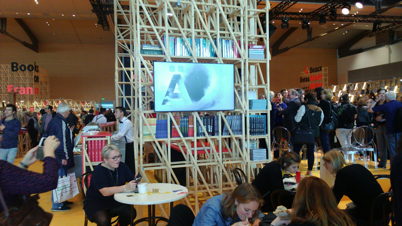 À l'occasion du la foire du livre de Francfort qui s'est tenue du 11 au 15 octobre 2017, le pavillon français accueille les productions des 53 étudiants de BTS Design Graphique option médias imprimés et médias numériques de l’Ensaama.