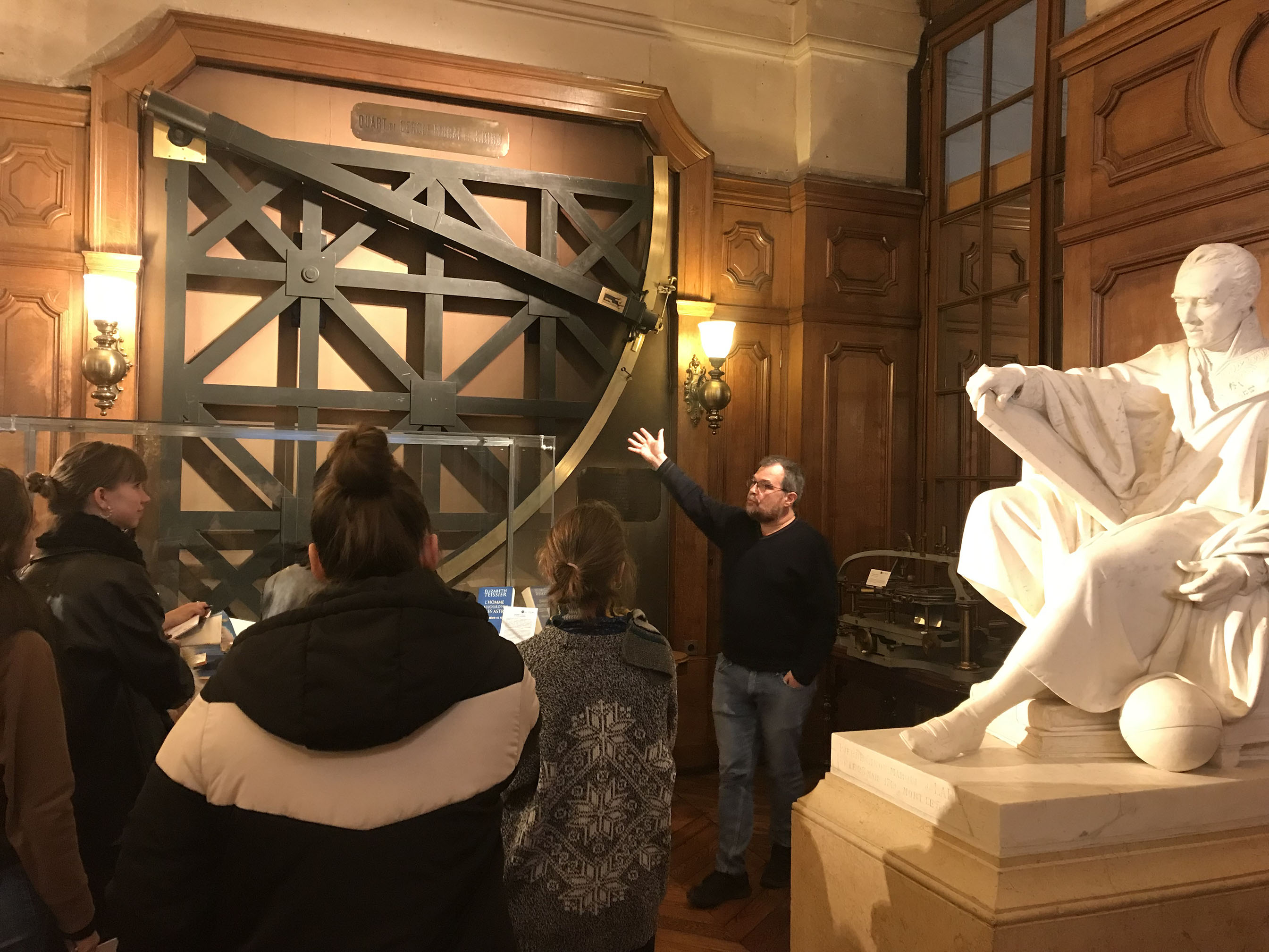 Dans la perspective d’un projet de scénographie d’exposition dont l’objet est de valoriser les collections de l’Observatoire de Paris, les étudiants de DNMADE 1 « Patrimoine et lieux culturels » ont bénéficié d’une visite de ce lieu exceptionnel fondé par l’Académie Royale des Sciences en 1667. Après une présentation des missions de cette institution et une visite des collections conservées par la Bibliothèque de l’Observatoire, les étudiants ont pu voir la méridienne dans la salle Cassini, déambuler sur les toitures de cet édifice conçu par Claude Perrault au XVIIe siècle et découvrir, sous la coupole, la lunette astronomique commandée par François Arago en 1846.
