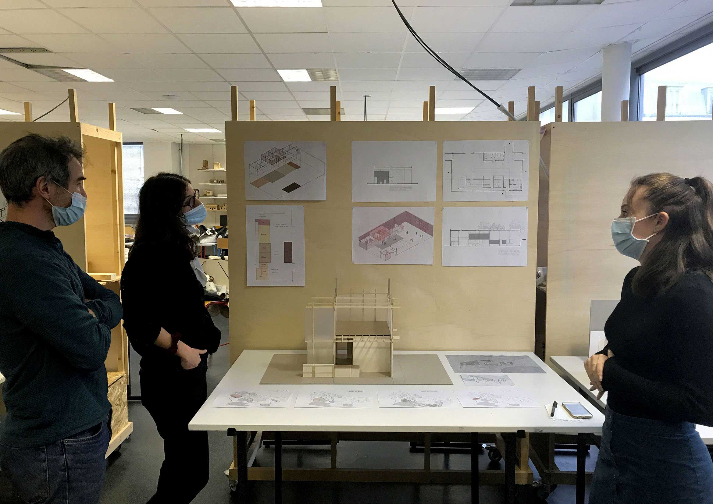 Pendant les travaux de réhabilitation du Théâtre Nanterre-Amandiers, une salle provisoire de spectacle doit être installée dans un bâtiment adjacent. Les étudiants de DNMADE 2 Design d'Espace « Patrimoine et médiation culturelle » devaient réfléchir à la conception du hall temporaire destiné à accueillir le public (billetterie, espace de restauration, librairie, vestiaires, bureaux).