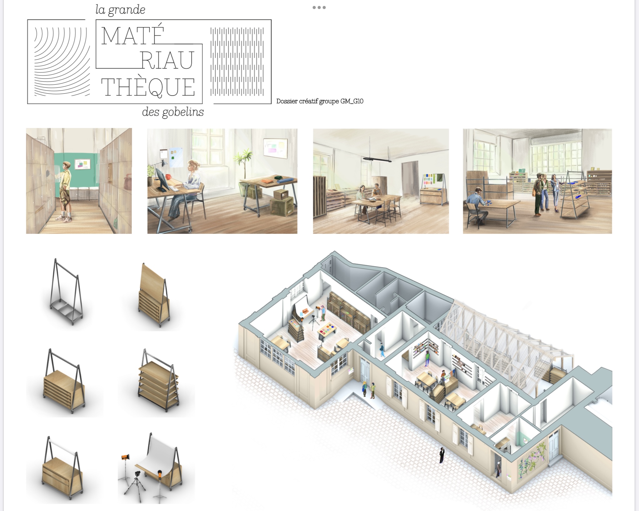 Dans le cadre du Campus Mode, Métiers d'art et Design et de l'enclos des Gobelins, les étudiants des écoles de design de la culture et de l'éducation nationale étaient sollicités pour proposer un vaste et ambitieux projet d'aménagement de la Grande Matériauthèque du Campus au cœur des Gobelins dans le bâtiment Chabrol.