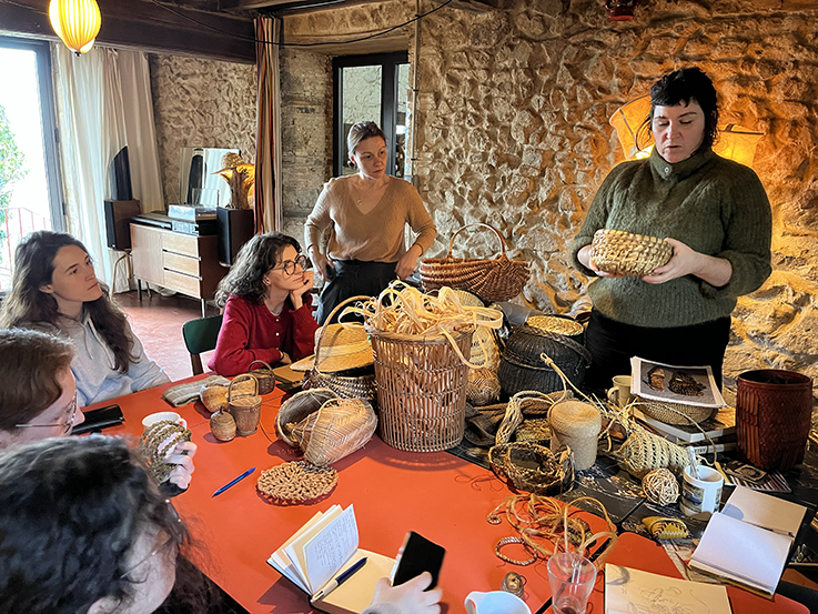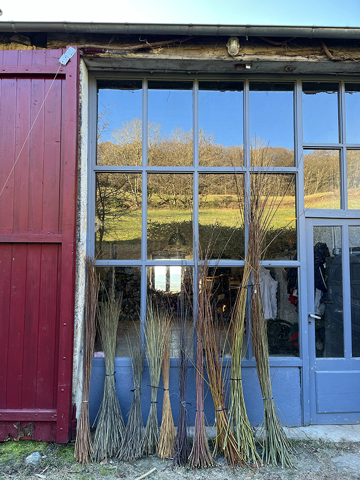 Fin janvier, les étudiants de DSAA1 TEXTILE, MATÉRIAUX, PROSPECTIVES ont été initiés à la vannerie sauvage par Isabel McGarva, vannière et archéologue dans le Parc régional du Morvan. Repérages, récolte de l’osier sur pied et collecte de plantes sauvages (joncs des marais, noisetier, châtaignier) nous ont permis de préparer ces matériaux (naturels, en libre-service) et de fabriquer un panier à anse. Prendre conscience d’un territoire, repérer ses ressources, travailler les branches fraîches, transformer, tresser pour faire perdurer des gestes et retrouver une connexion avec le vivant.