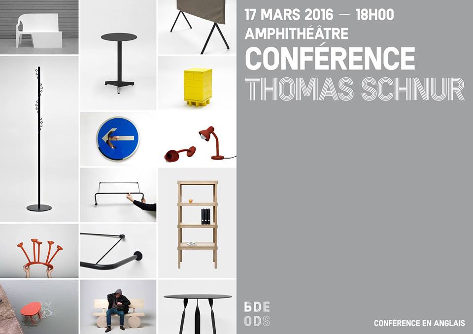 Conférence en anglais, du designer Thomas Schnur. À l'amphithéatre de l'Ensaama à 18 h thomasschnur.com
