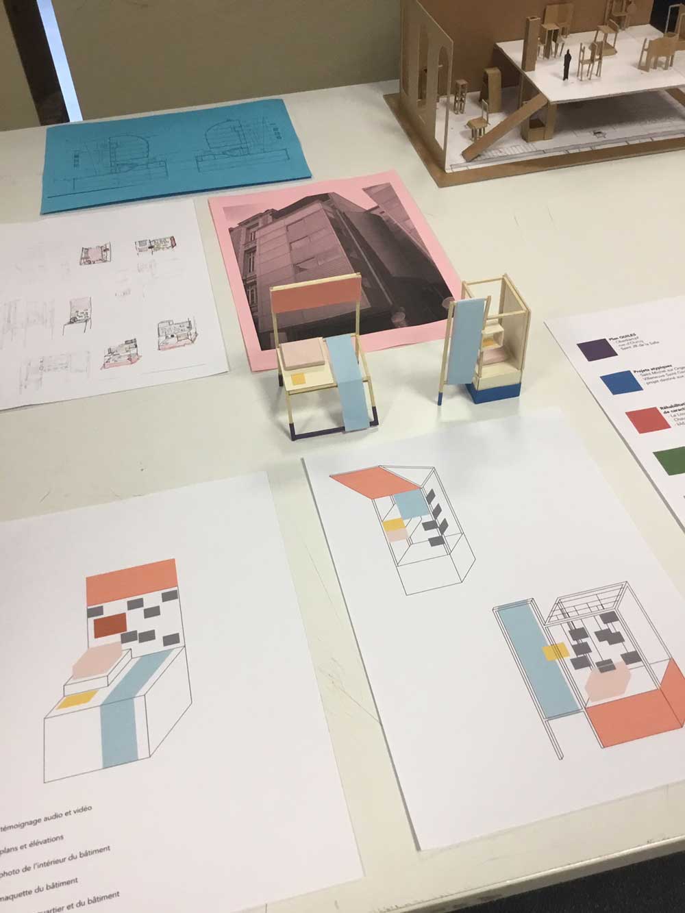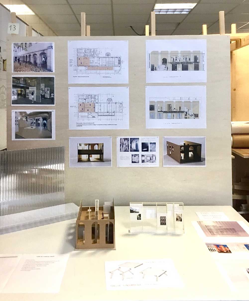 Les étudiants ont été sollicités à travers un workshop en novembre 2019 pour concevoir un projet scénographique d'exposition à la maison de l'architecture sur le site du couvent des Récollets.