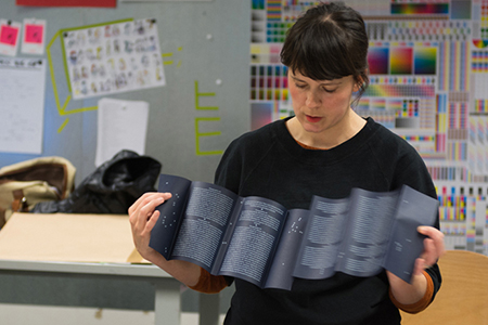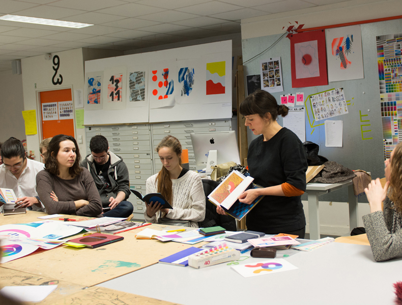 Orientée plus précisément sur l’impression offset, la présentation proposait aux étudiants de découvrir l’étendue de la recherche de Fanette Mellier et son approche singulière de la couleur à travers quelques uns de ses projets.
