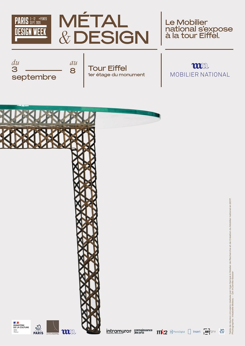 du 2.09.2020 au 8.09.2020À l’occasion de la Paris Design Week 2020, le Mobilier national présente, au premier étage de la tour Eiffel du 3 au 8 septembre 2020, une vingtaine de pièces de mobilier exceptionnelles en métal, conçues dans son Atelier de Recherche et de Création depuis 1964, date de sa création. Réalisées en collaboration avec de grands noms du design, ces œuvres en métal jouent de toutes les possibilités du matériau, faisant ainsi résonance à l’écrin de la Dame de fer qui les accueille.
