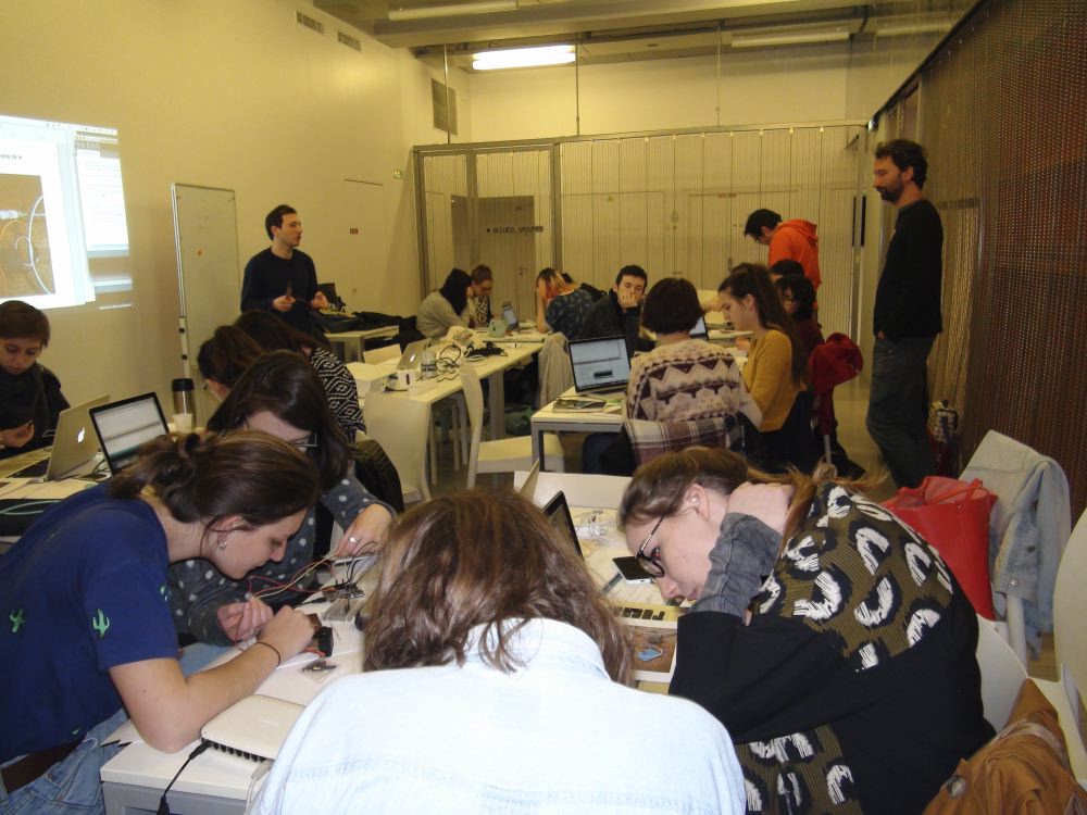 Les étudiants se familiarisent aux potentialités offertes par les objets connectés et comprennent les enjeux et ouvertures de la formation de designer graphique qu'ils ont choisie. Ils questionnent le rapport au réel et le rapport au matériel.