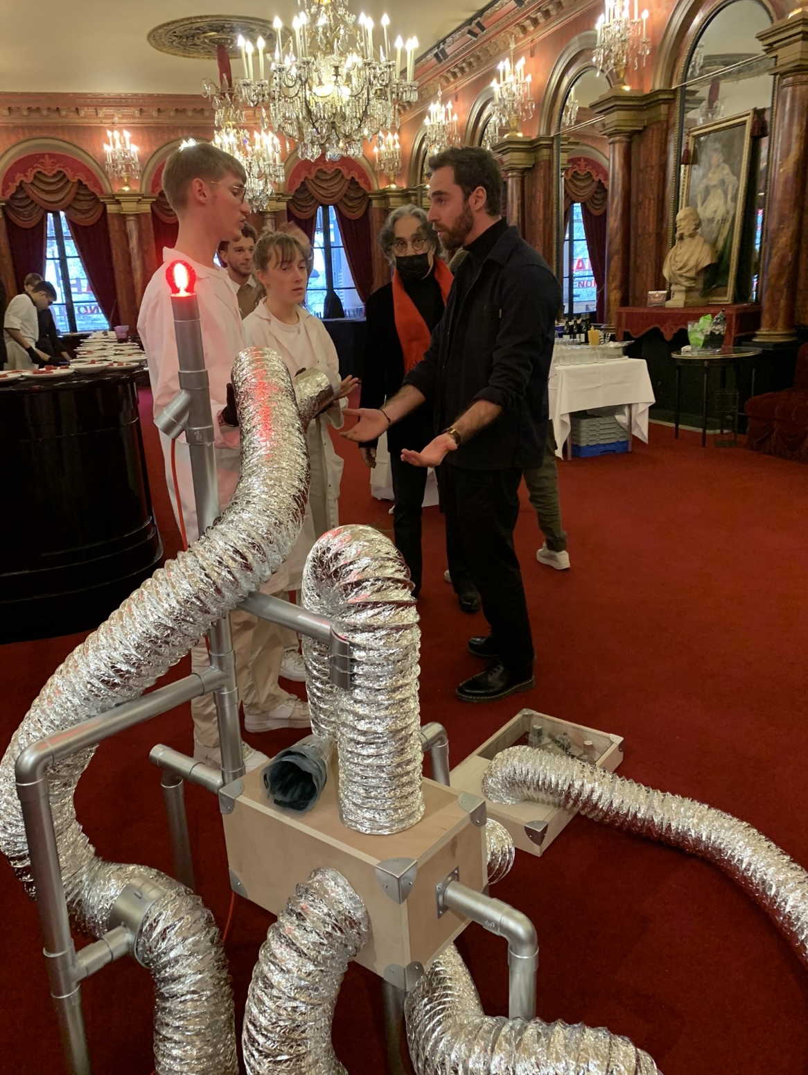 À l’issue de leur recherche, le Théâtre des Variétés a ouvert les portes du salon Offenbach aux étudiants qui ont pu inviter les comédiens et le personnel technique du théâtre à déguster un souper inspiré de L’Avare.