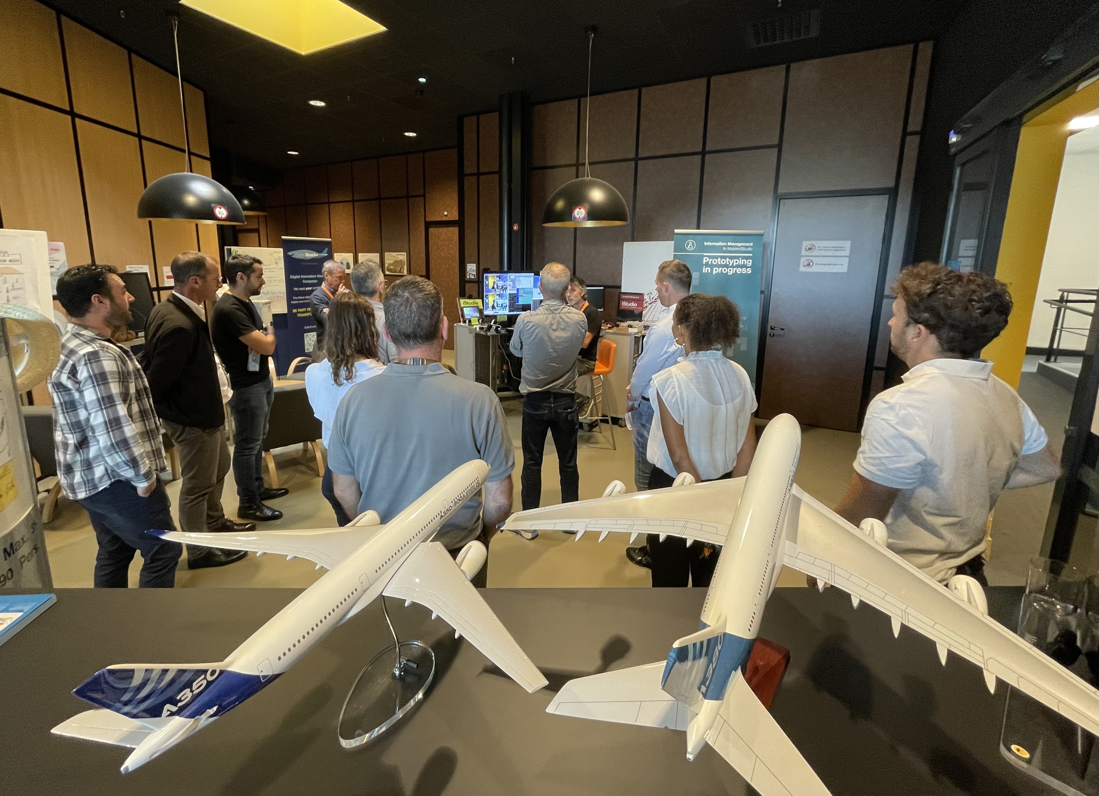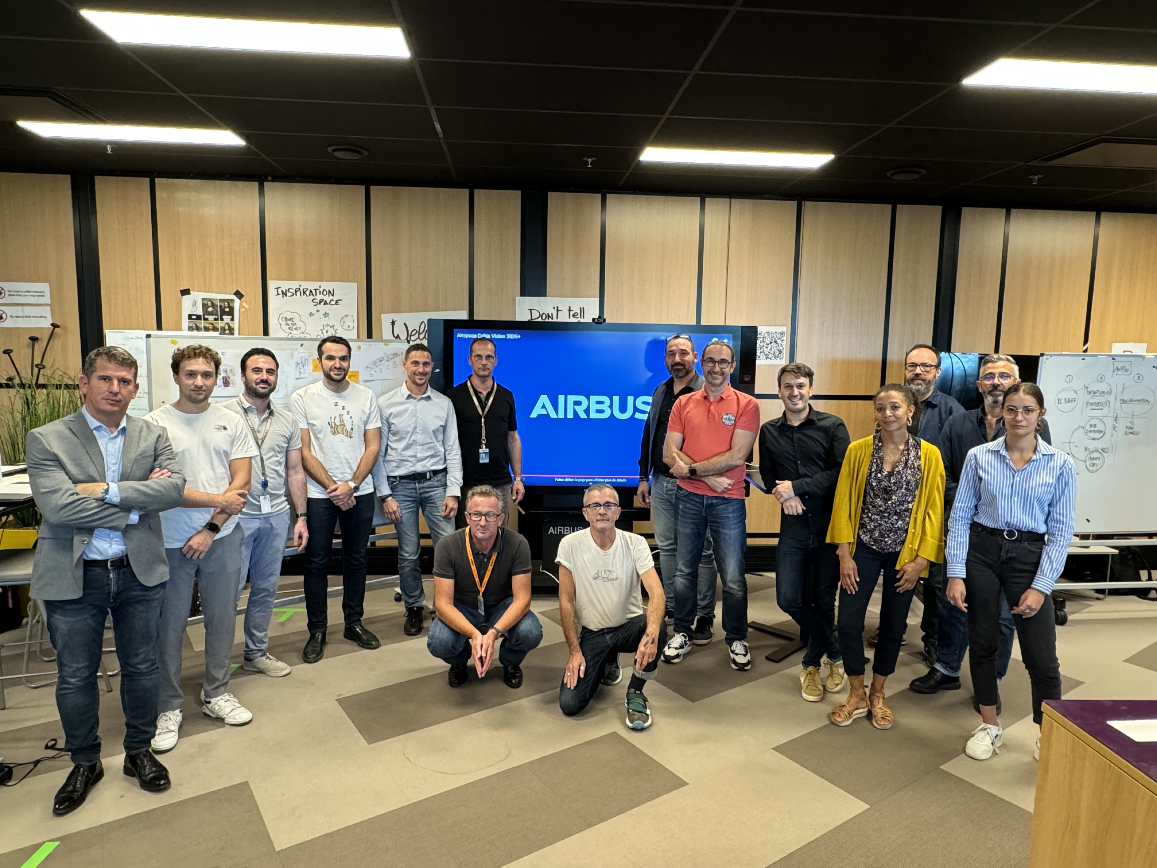 "The way to create the next AJC cabin" est une formation autour des démarches initiales de conception en design, elle s'est déroulée du 11 au 12 octobre 2023 à Blagnac dans le cadre du studio d'innovation Airbus avec quinze membres de l'équipe de Sylvain Mariat - Head of ACJ Design & Concepts - lui même diplômé de l'Ensaama - Olivier de Serres.