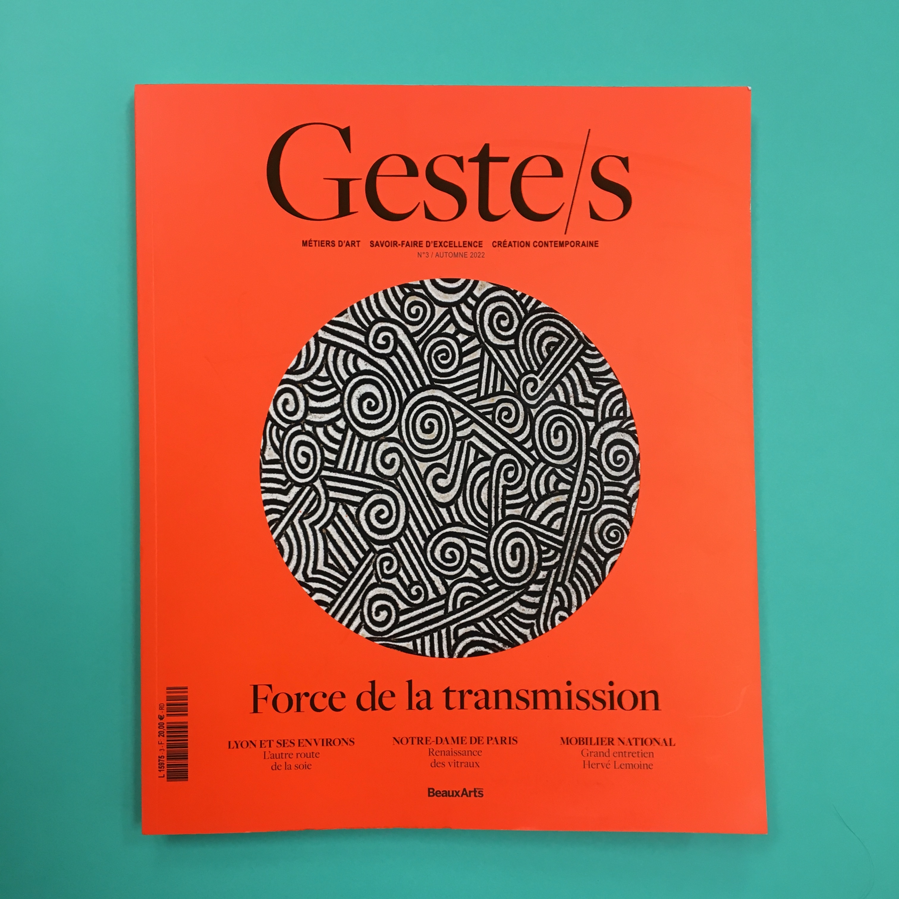 Spécialisé dans les savoir-faire d’excellence et la création contemporaine, le magazine GESTE/S, édité par Beaux-Arts magazine, consacre un bel article à l’ensaama , ses formations et ses spécificités. Les ponts entre l’enseignement du design et des métiers d’art créés dans l’école sont particulièrement mis en valeur.