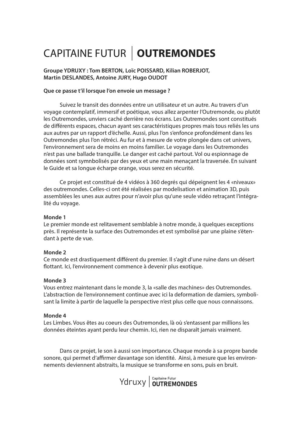 Groupe YDRUXY : Tom Berton, Loïc Poissard, Kilian Roberjot, Martin Deslandes, Antoine Jury, Hugo Oudot.
