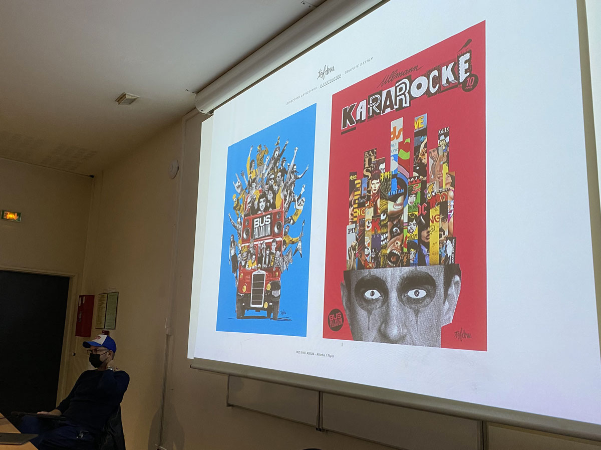 Ce parcours très singulier lui a permis de toucher à de nombreux domaines des métiers du graphisme. A l’occasion de cette conférence-débat les étudiants ont pu comprendre les différents statuts professionnels, le rapport avec le client, la tarification, le rôle du relationnel, et ce afin de mieux saisir la nature de leur future activité.