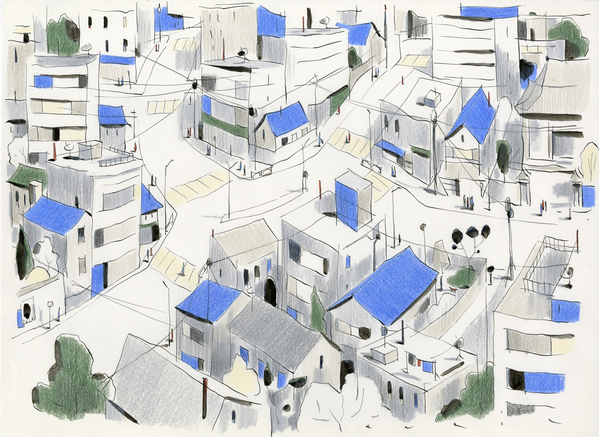 Le style d'Avril est devenu particulièrement personnel dès le début des années 1990, avec des dessins de moins en moins réalistes et parfois proches de l'abstrait, défiant les lois de la perspective urbaine pour créer une atmosphère plutôt que de retranscrire la réalité. Entre figuration et abstraction dans son travail, la frontière devient très ténue. C'est cette fragilité là qu’il aime entretenir.
