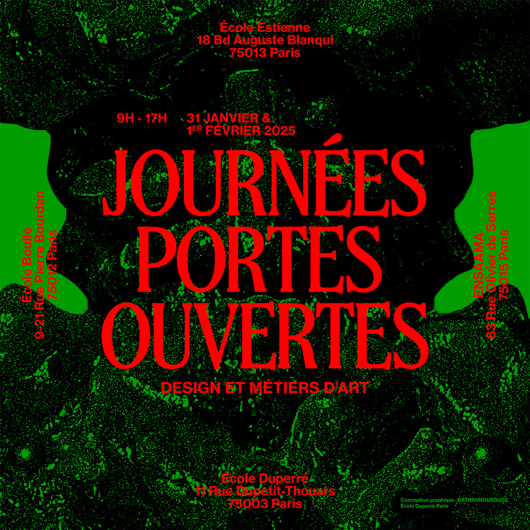 L'équipe de direction de l'Ensaama - Olivier de Serres, l'équipe pédagogique et les étudiants vous invitent aux Journées Portes Ouvertes vendredi 31 janvier et samedi 1 février 2025 de 9h à 17h.