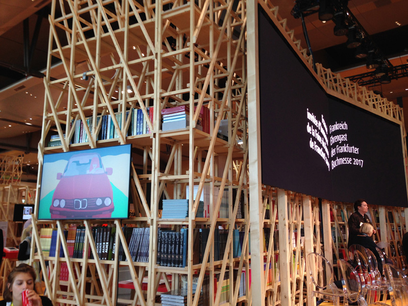 À l'occasion du la foire du livre de Francfort qui s'est tenue du 11 au 15 octobre 2017, le pavillon français accueille les productions des 53 étudiants de BTS Design Graphique option médias imprimés et médias numériques de l’Ensaama.