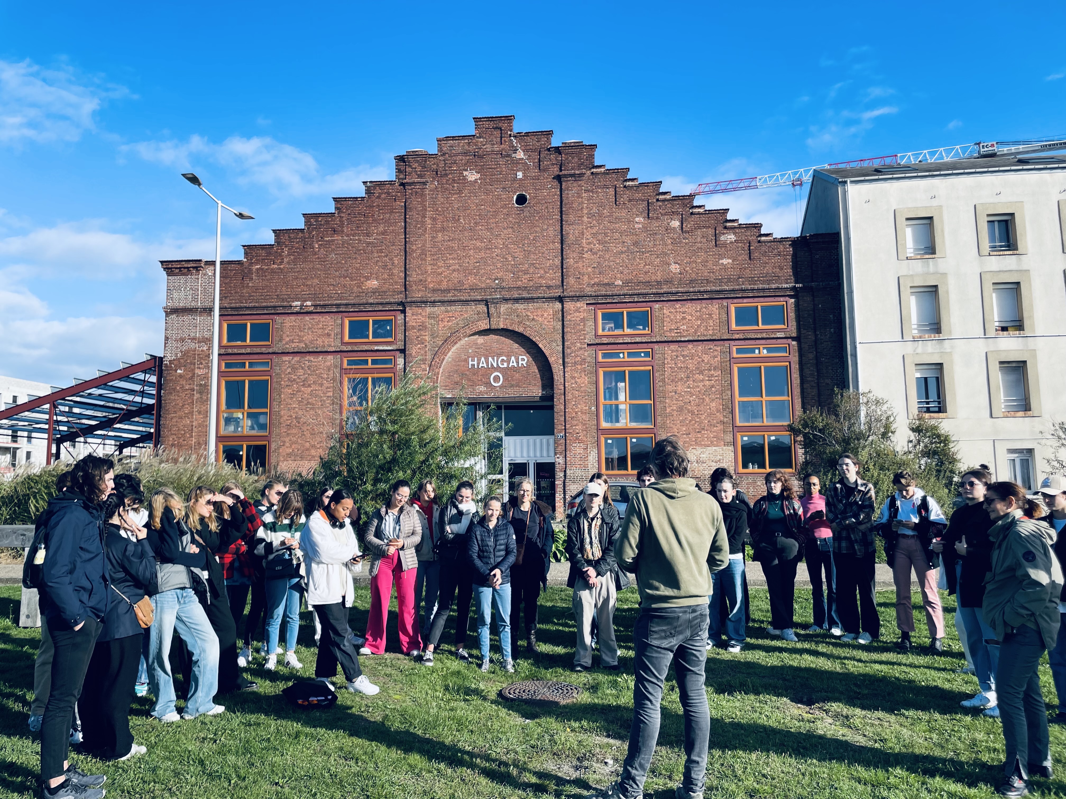 Les deux groupes ont alterné des visites de sites dans la ville et des temps de chantier participatif au Hangar Zéro. Ils ont été pris en charge par l'architecte Frédéric Denise et ses équipes autour de pratiques de construction en terre et de la filière de réemploi.
