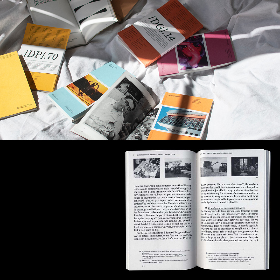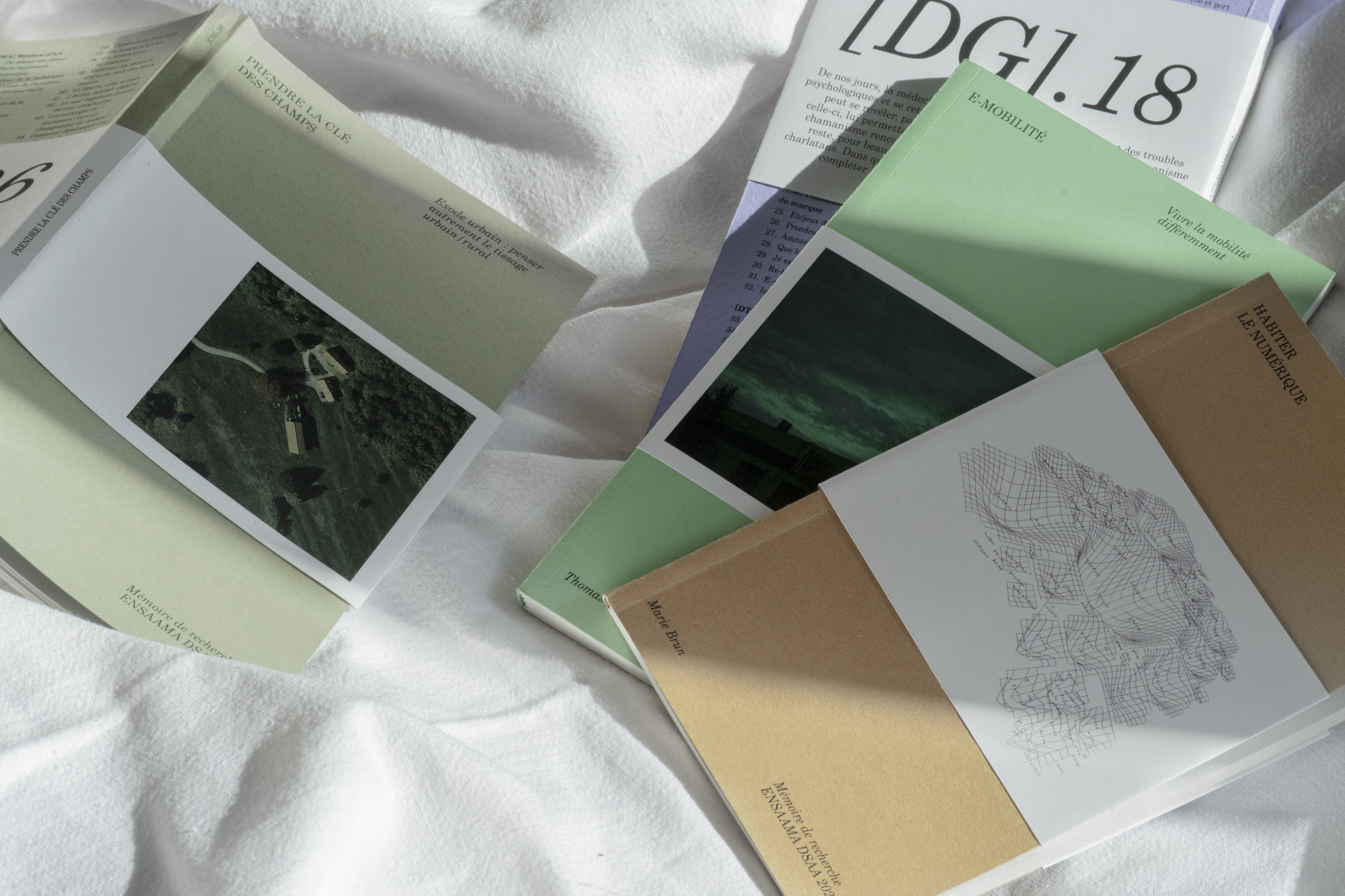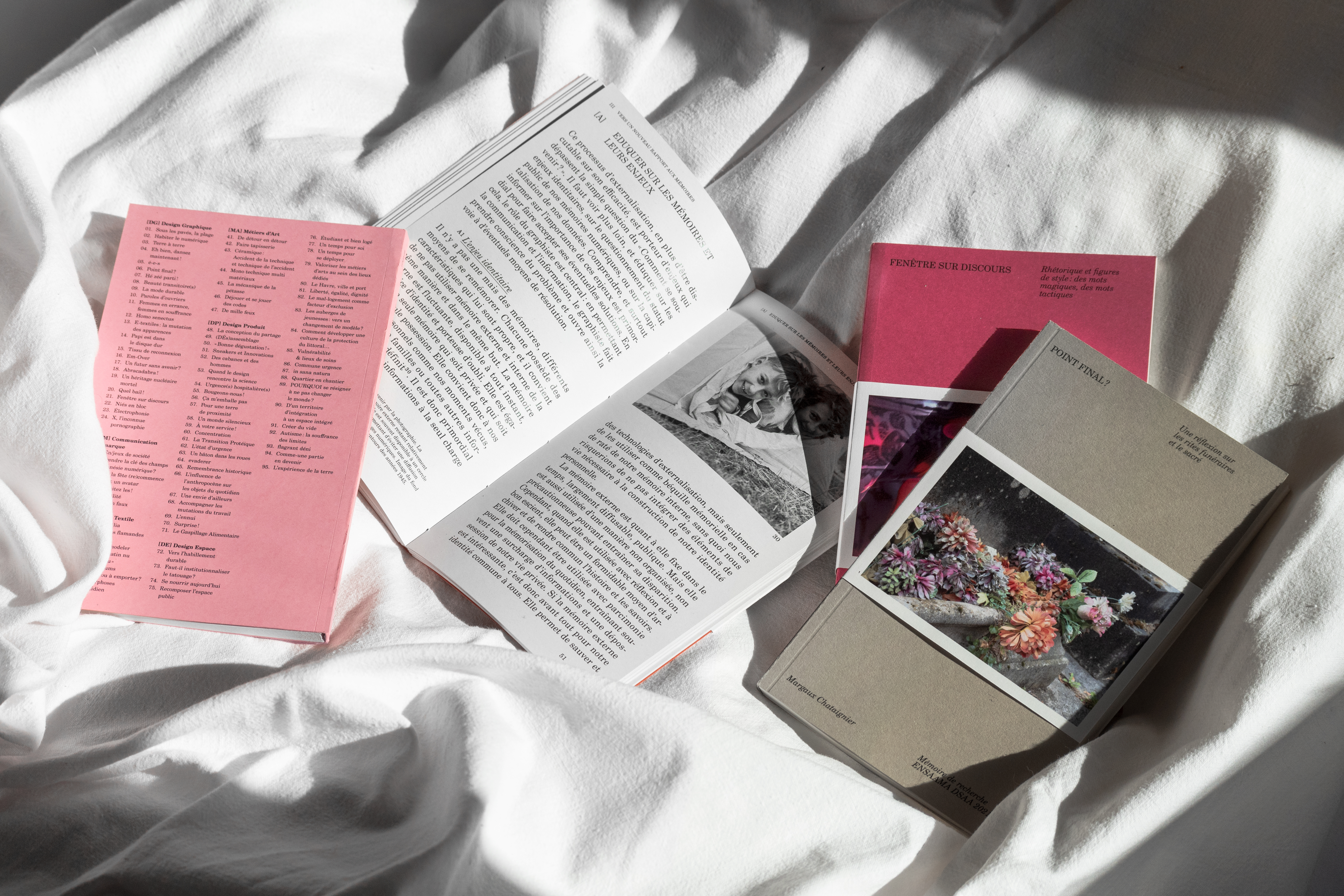 La deuxième année d'atelier du diplôme supérieur d'arts appliqués (DSAA) se déroule en deux temps : mémoire et projet. Le mémoire de recherche est un outil critique qui permet à chaque auteur.rice de questionner une thématique d'où émerge une problématique. Les ouvrages sont ponctués de ressources iconographiques, interviews, diagrammes, citations, qui permettent d'appuyer l'analyse et de mettre en évidence des hypothèses de recherche pour le projet à venir. La mise en page et la fabrication du mémoire clôturent la première partie d’année. C'est à ce moment que la section de design graphique (og_ensaama) encadrée par Yorel Cayla (WA75) met au point une collection éditoriale.