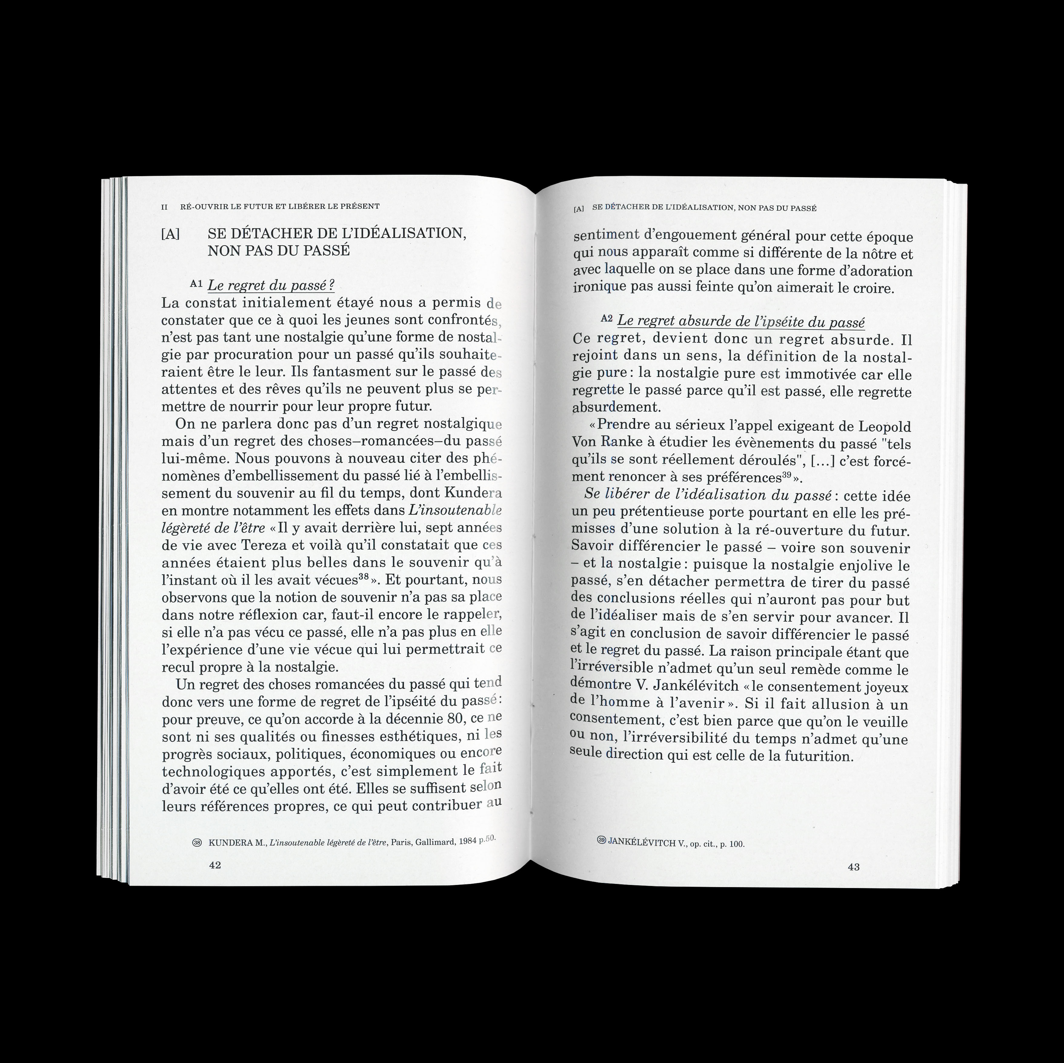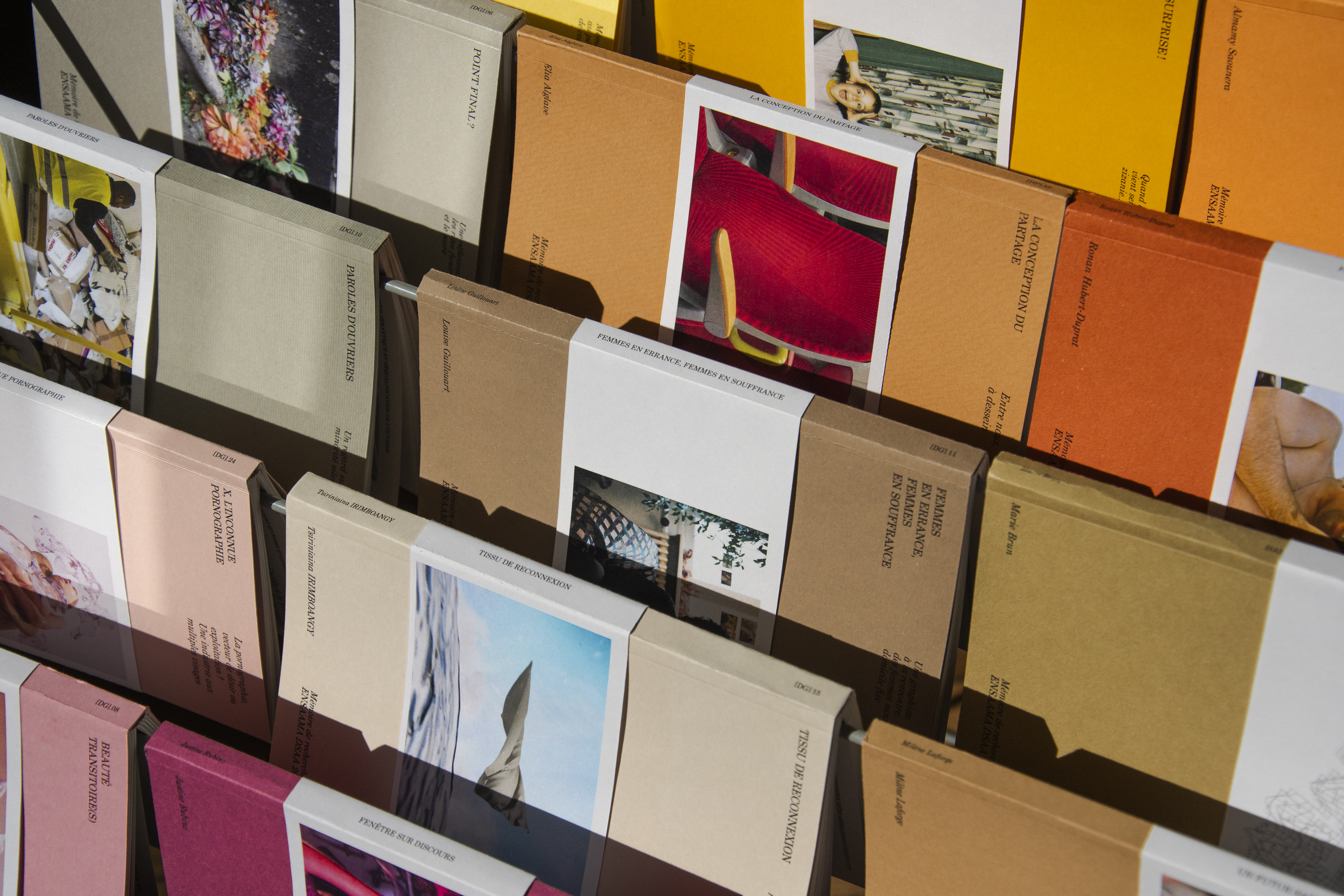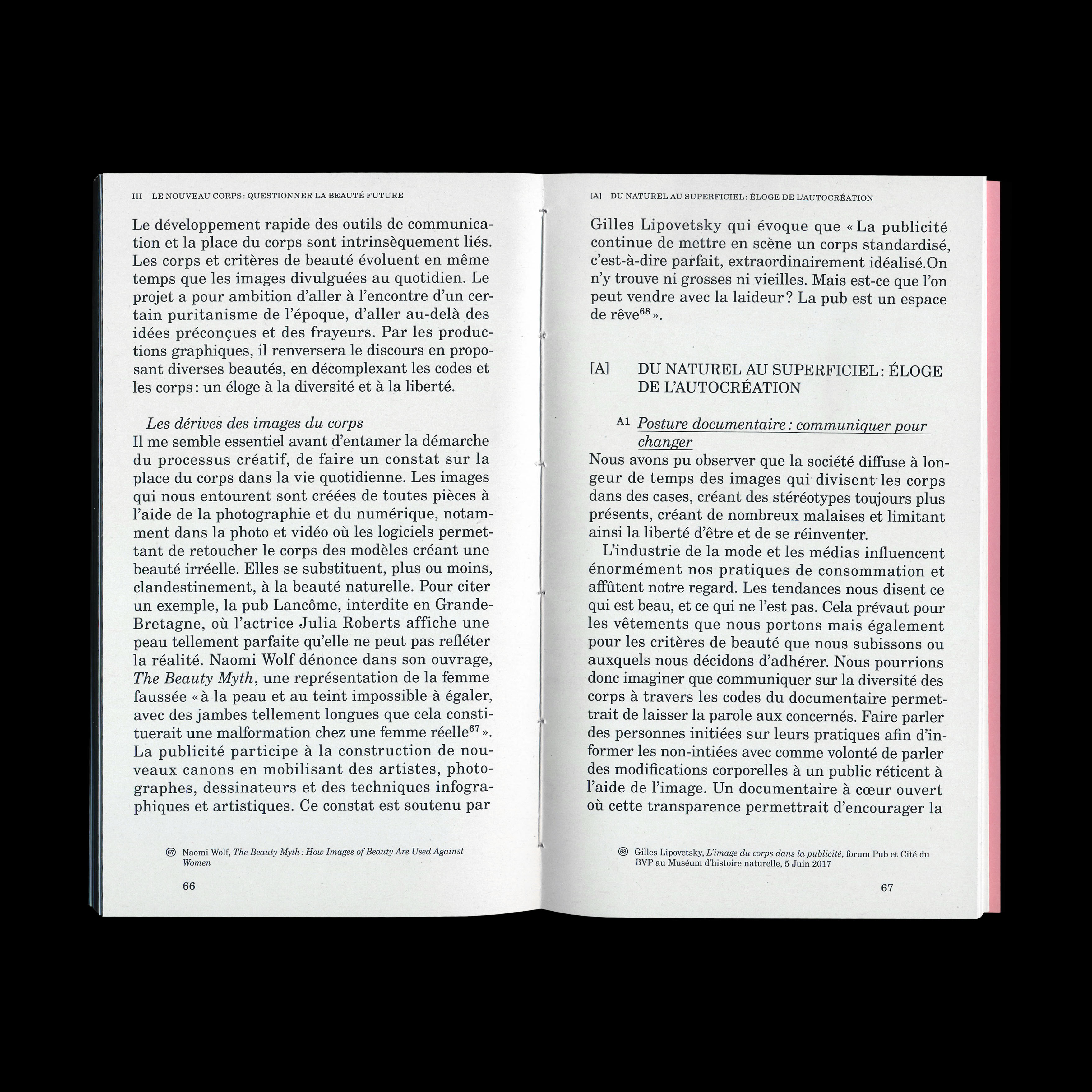 La deuxième année d'atelier du diplôme supérieur d'arts appliqués (DSAA) se déroule en deux temps : mémoire et projet. Le mémoire de recherche est un outil critique qui permet à chaque auteur.rice de questionner une thématique d'où émerge une problématique. Les ouvrages sont ponctués de ressources iconographiques, interviews, diagrammes, citations, qui permettent d'appuyer l'analyse et de mettre en évidence des hypothèses de recherche pour le projet à venir. La mise en page et la fabrication du mémoire clôturent la première partie d’année. C'est à ce moment que la section de design graphique (og_ensaama) encadrée par Yorel Cayla (WA75) met au point une collection éditoriale.