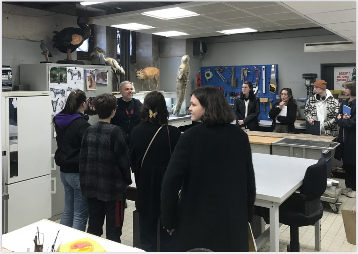 Afin d’appréhender ce haut lieu de la culture scientifique naturaliste, les étudiants ont eu la chance de travailler sur place, une journée par semaine, durant les mois d’octobre et novembre. Un programme de visites et de rencontres particulièrement riche a permis de découvrir l’histoire du MNHN, d’identifier ses missions, de comprendre comment muséographie et scénographie s’articulaient autour d’un propos scientifique. Les professionnels qui œuvrent au sein du Muséum ont échangé longuement avec les étudiants, offrant ainsi un éclairage général sur la diversité des métiers liés à l’exposition.
