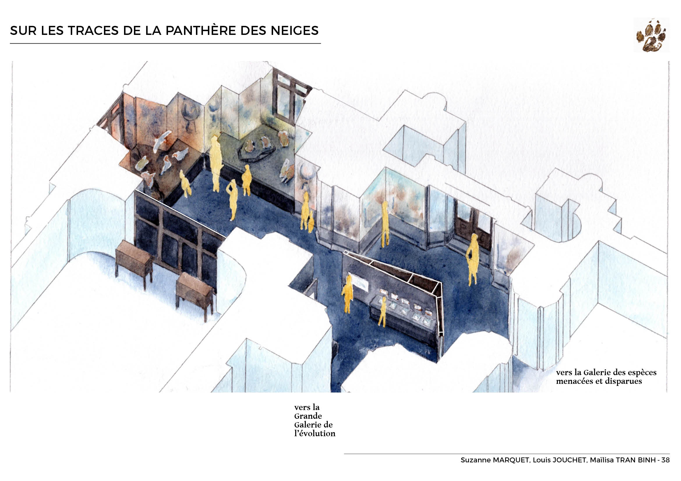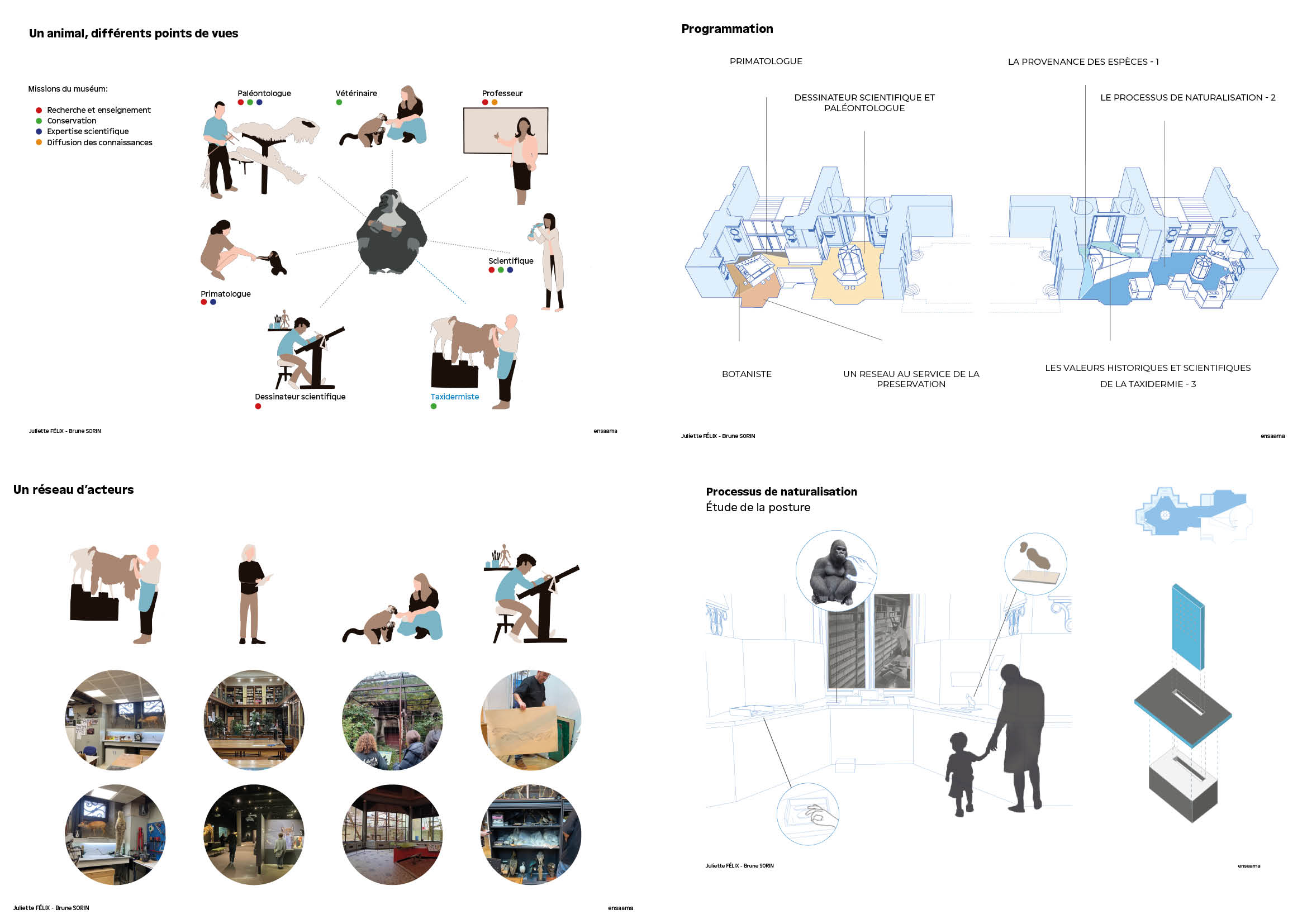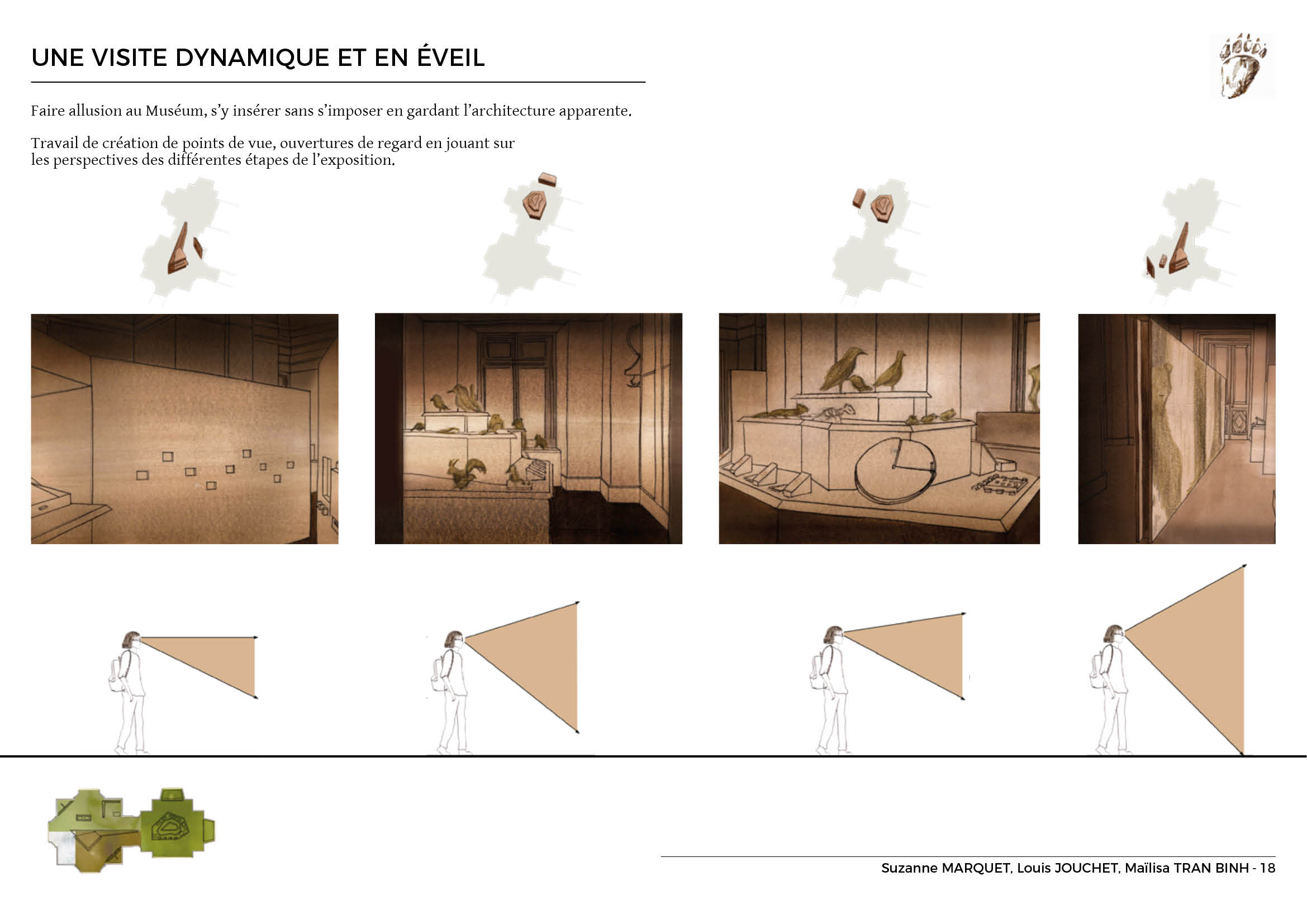 Dans le cadre d’un partenariat avec le MNHN, les étudiants de DNMADE 2 « Patrimoine et lieux culturels » devaient concevoir deux espaces scénographiques ayant vocation à s’intégrer au parcours de visite actuel, plus particulièrement à l’Acte III « L’Homme facteur d’évolution ».