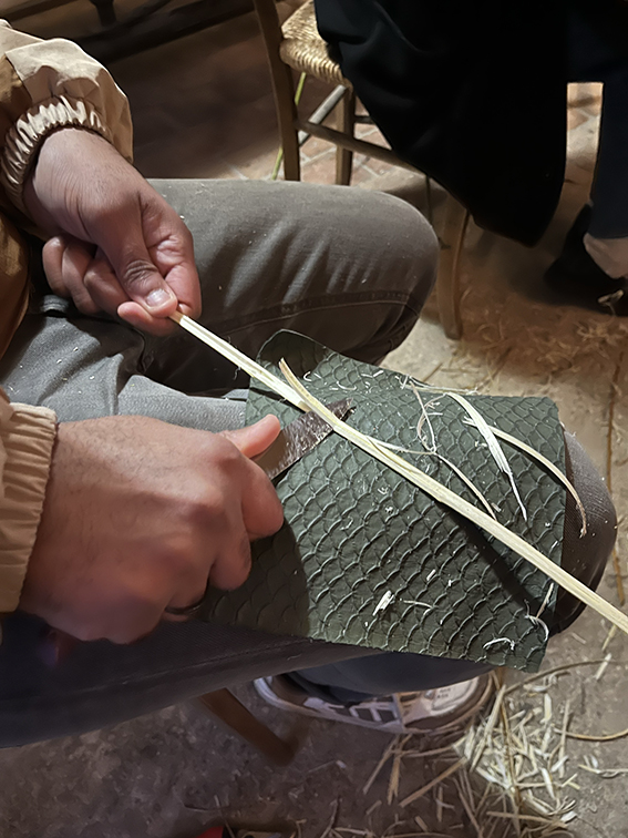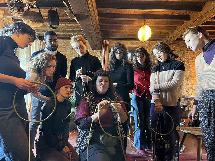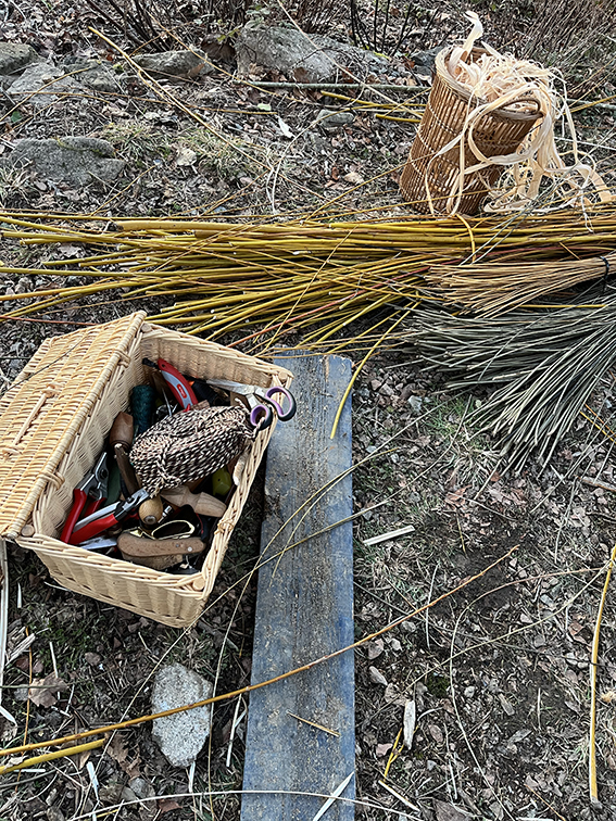 Fin janvier, les étudiants de DSAA1 TEXTILE, MATÉRIAUX, PROSPECTIVES ont été initiés à la vannerie sauvage par Isabel McGarva, vannière et archéologue dans le Parc régional du Morvan. Repérages, récolte de l’osier sur pied et collecte de plantes sauvages (joncs des marais, noisetier, châtaignier) nous ont permis de préparer ces matériaux (naturels, en libre-service) et de fabriquer un panier à anse. Prendre conscience d’un territoire, repérer ses ressources, travailler les branches fraîches, transformer, tresser pour faire perdurer des gestes et retrouver une connexion avec le vivant.