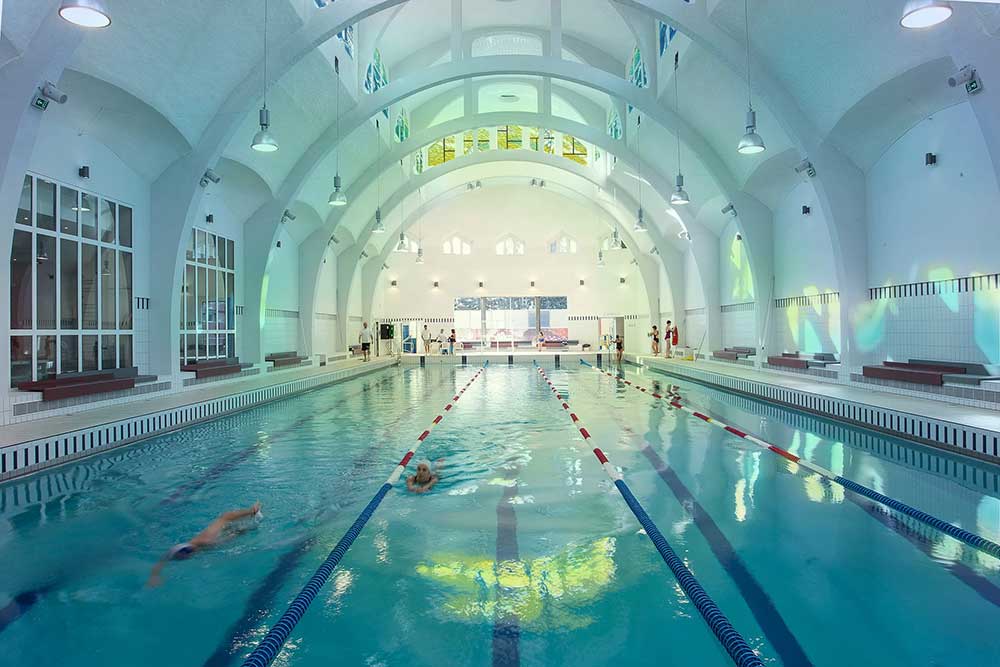 Diving in water means relinquishing control over one's body. Only by yielding can one become weightless and free. Through stained glass, I'm trying to give the Butte-aux-Cailles swimming pool in Paris a sense of oneirism and convey the relationship between human body and water. Light and colors will be reflected on the pool and will flood its streamlined art-deco architecture. Painted and etched glass will depict ethereal figures floating in a lulling environment.